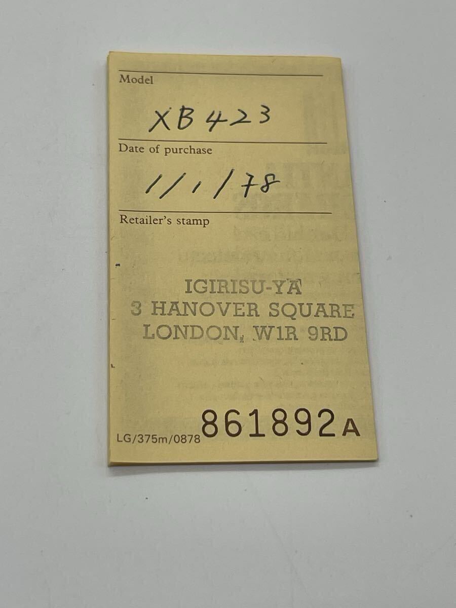 | 購入日 / 購入店 | 1978年1月1日 / IGIRISU-YA 3 HANOVER SQUARE, LONDON |