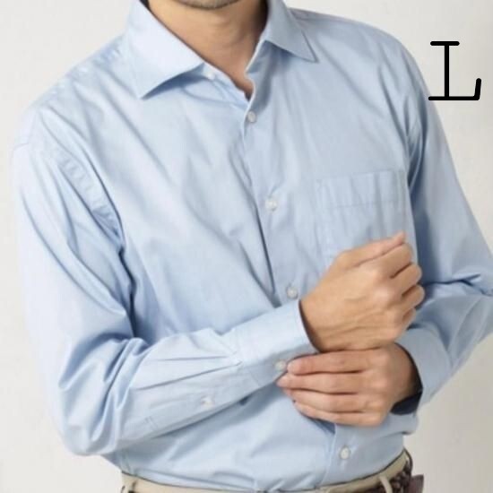 メンズ レギュラーフィット ワイドカラー L ブルー シャツ
