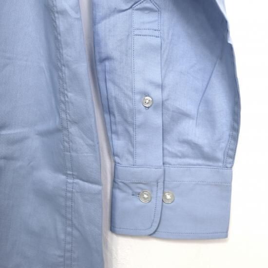 ややゆったりとしたシルエットにすることで、モダンな印象に仕上げています。ボタンを開いても襟立ちが美しいワイドカラーデザインで