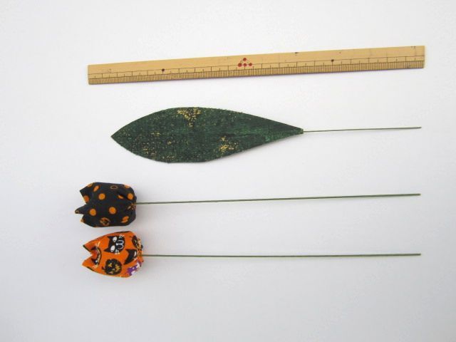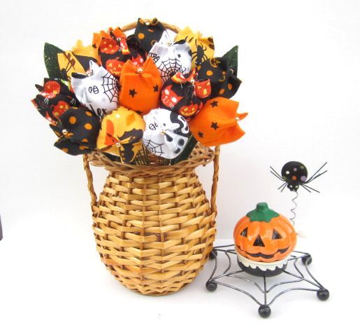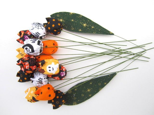・ ハロウィン柄のチューリップ15本+葉っぱ2枚付きです。