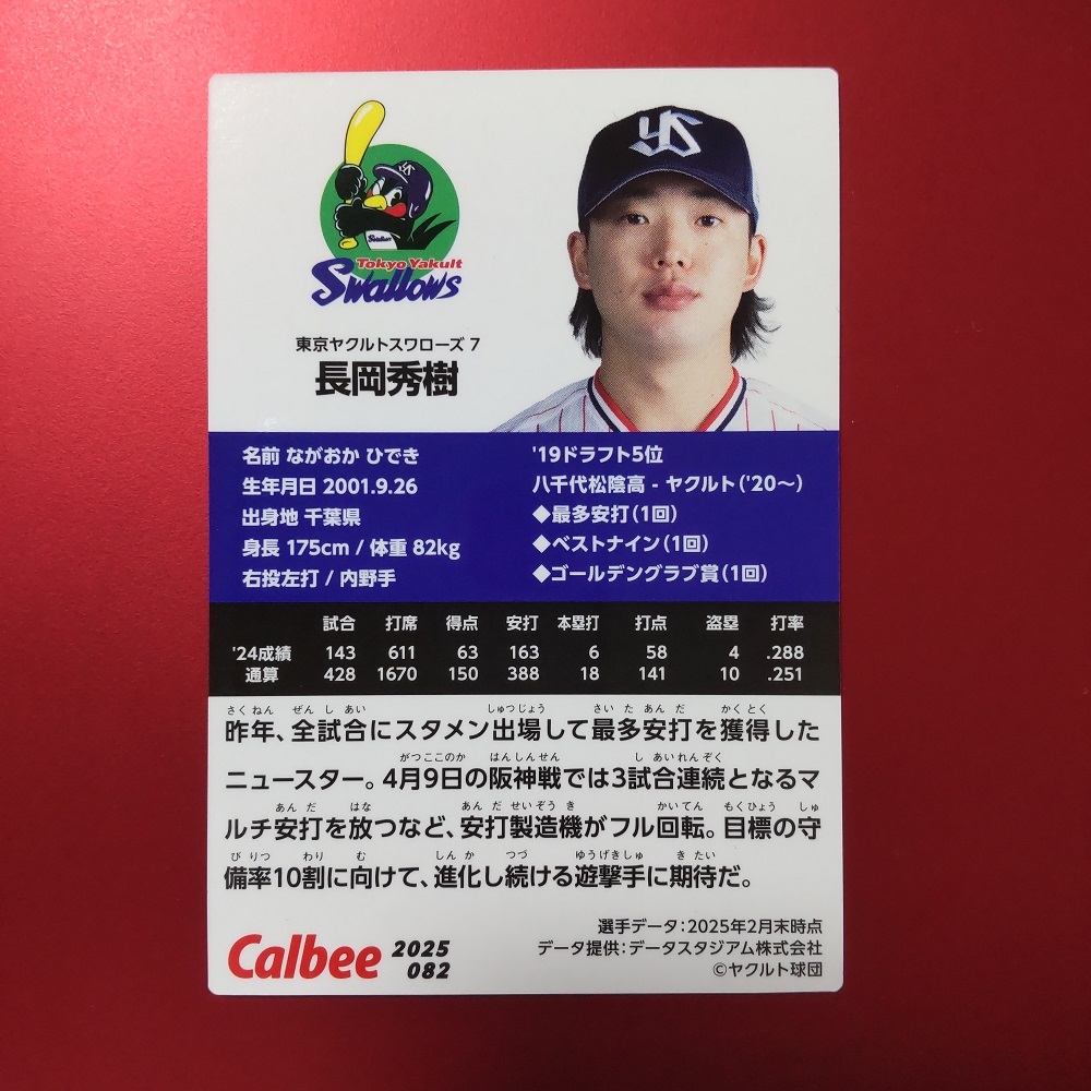 ◆ カルビー 2025年 第2弾 082 長岡 秀樹(ヤクルト) レギュラーカード