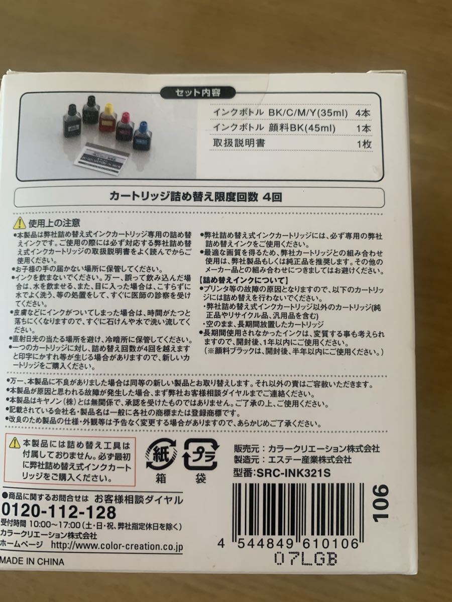 ※詰め替え式インクカートリッジ専用のインク 約4回分、