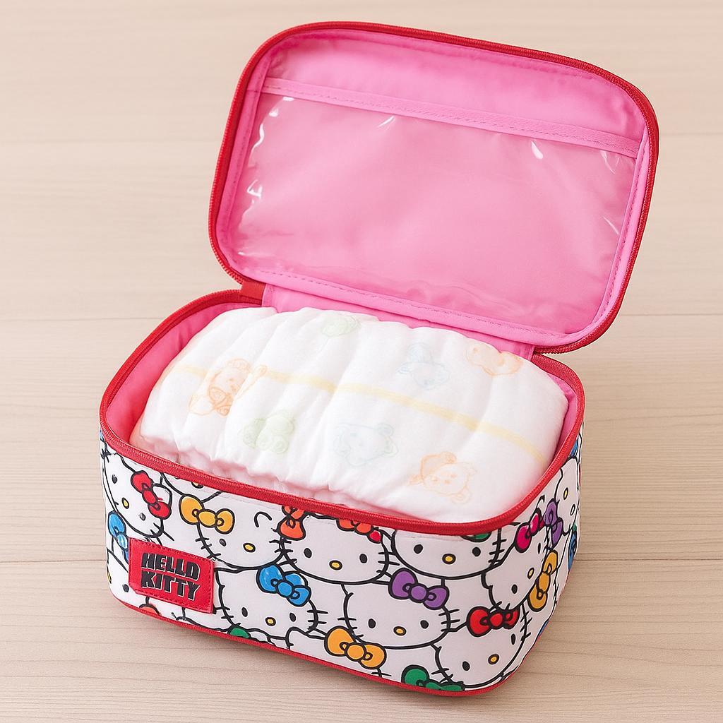 おむつやおしりふき、ミニタオルなどをすっきり収納できる、コンパクトなおむつポーチです。