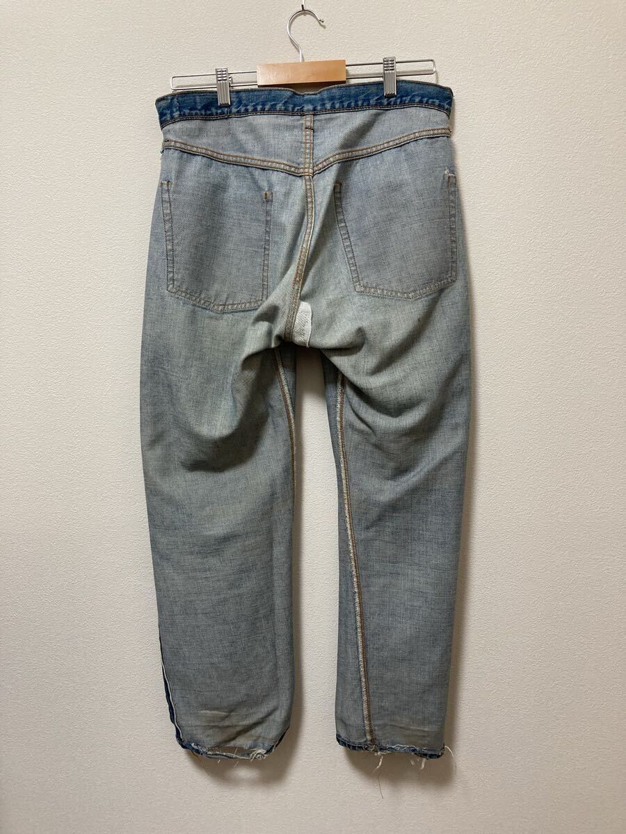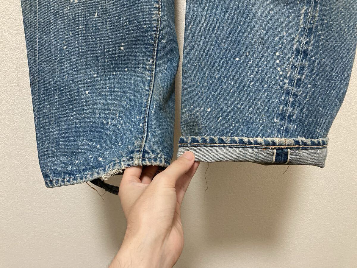 股と右膝がリペアされています。バンドポケット、両裾、右膝に擦れや破れがあります。フロントボタンホールに広がりがありますが、閉めることは可能です。その他にも記載しきれない小傷や汚れはありますが、大きなところでは上記の通りとなります。状態にご理解をいただける方でご検討ください。
