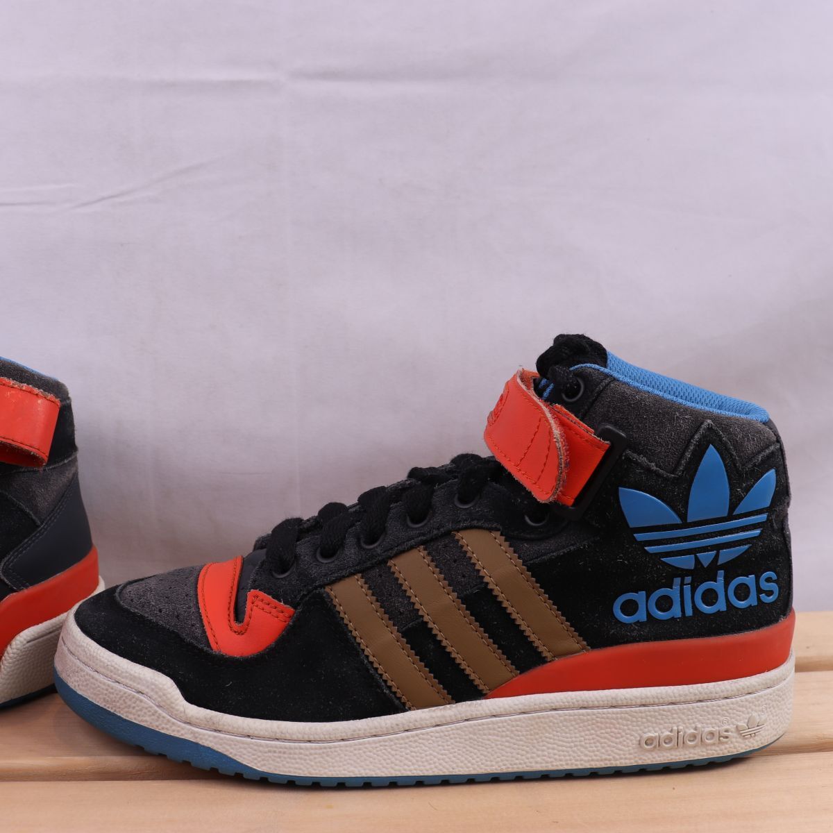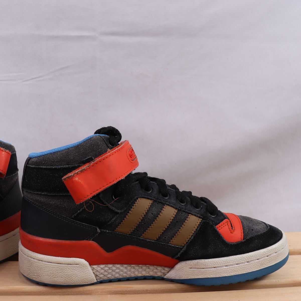 z1855 アディダス フォーラム ミッド US7 1/2 25.5cm/黒 ブラック オレンジ 青 茶 白 マルチ adidas sFORUM MID メンズ スニーカー 中古