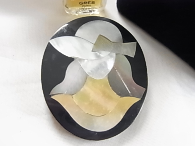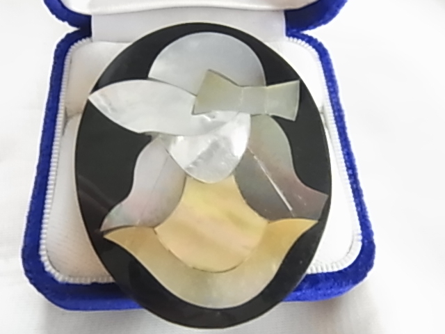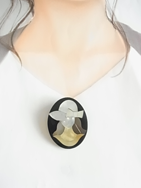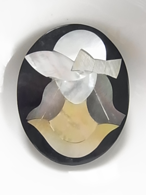 ビンテージ/ヴィンテージ 大き目存在感 シェル 貝殻装飾のカメオデザイン 帽子を被った女性のデザイン レトロの素敵なブローチ★