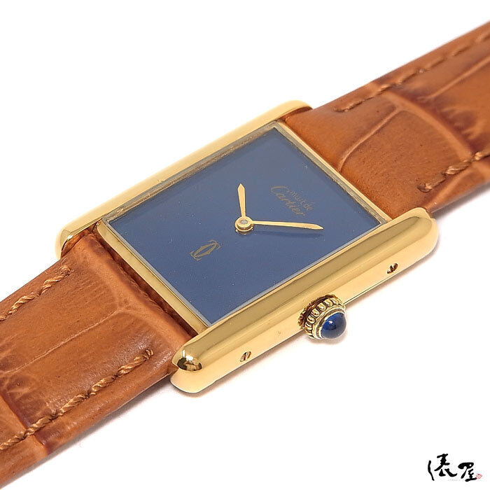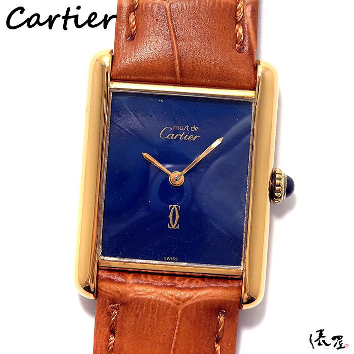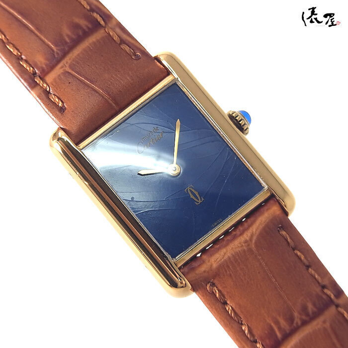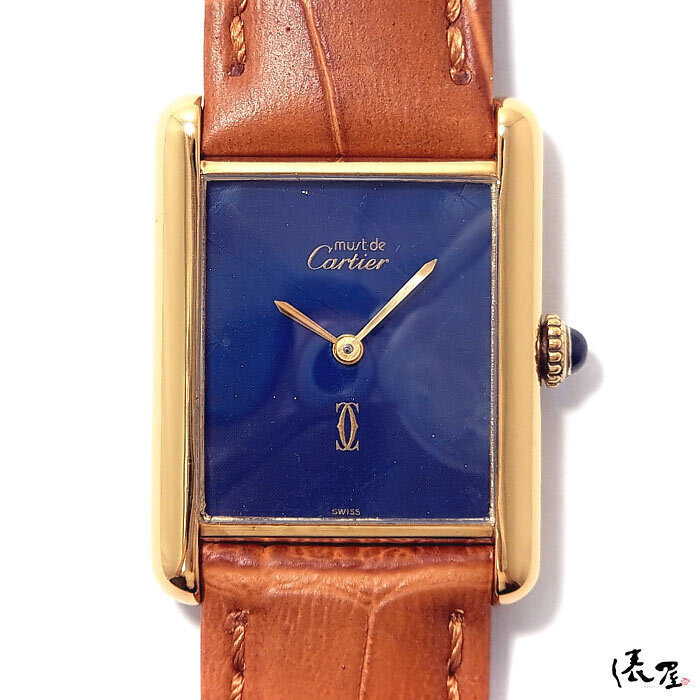 【カルティエ】マストタンク LM 手巻き ラピス コンプリート済 極美品 ヴィンテージ メンズ 時計 Cartier Tank 俵屋