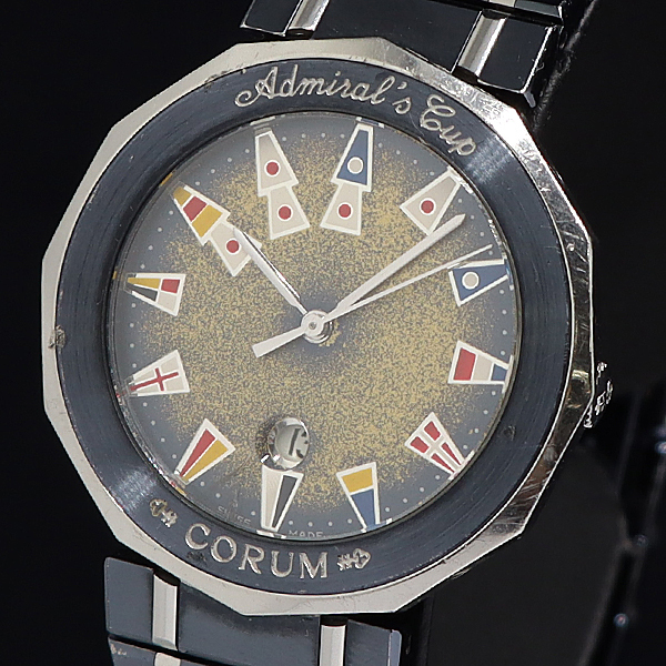 1円 箱付 稼働 コルム アドミラルズカップ 99.810.30V50 506072 QZ ネイビー文字盤 レディース腕時計 0429000 9NBT KMR