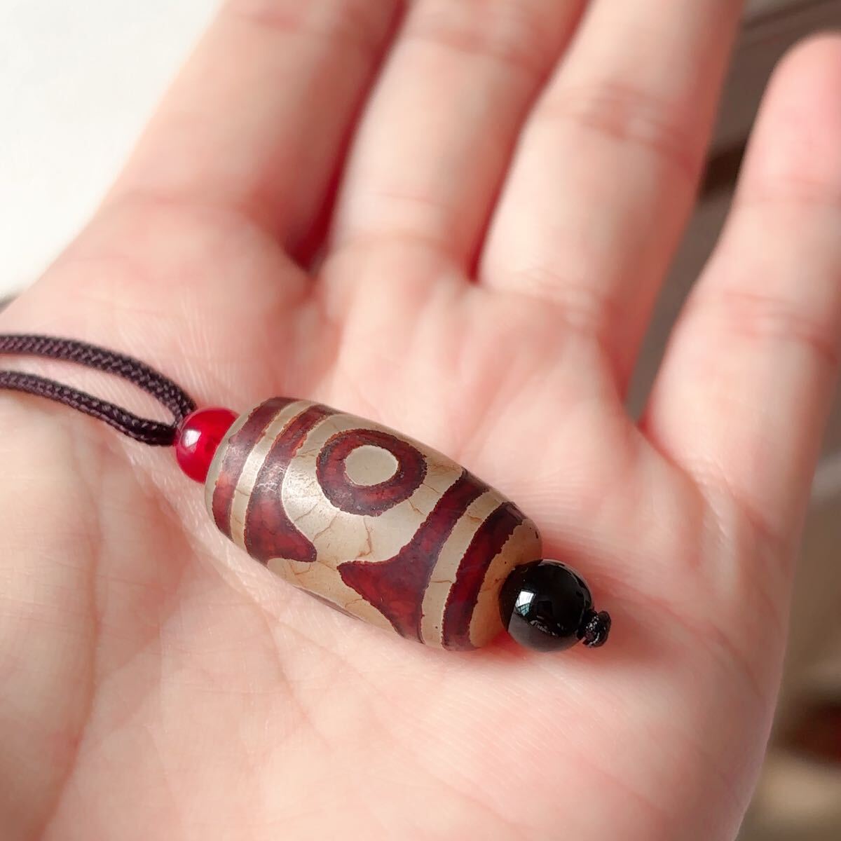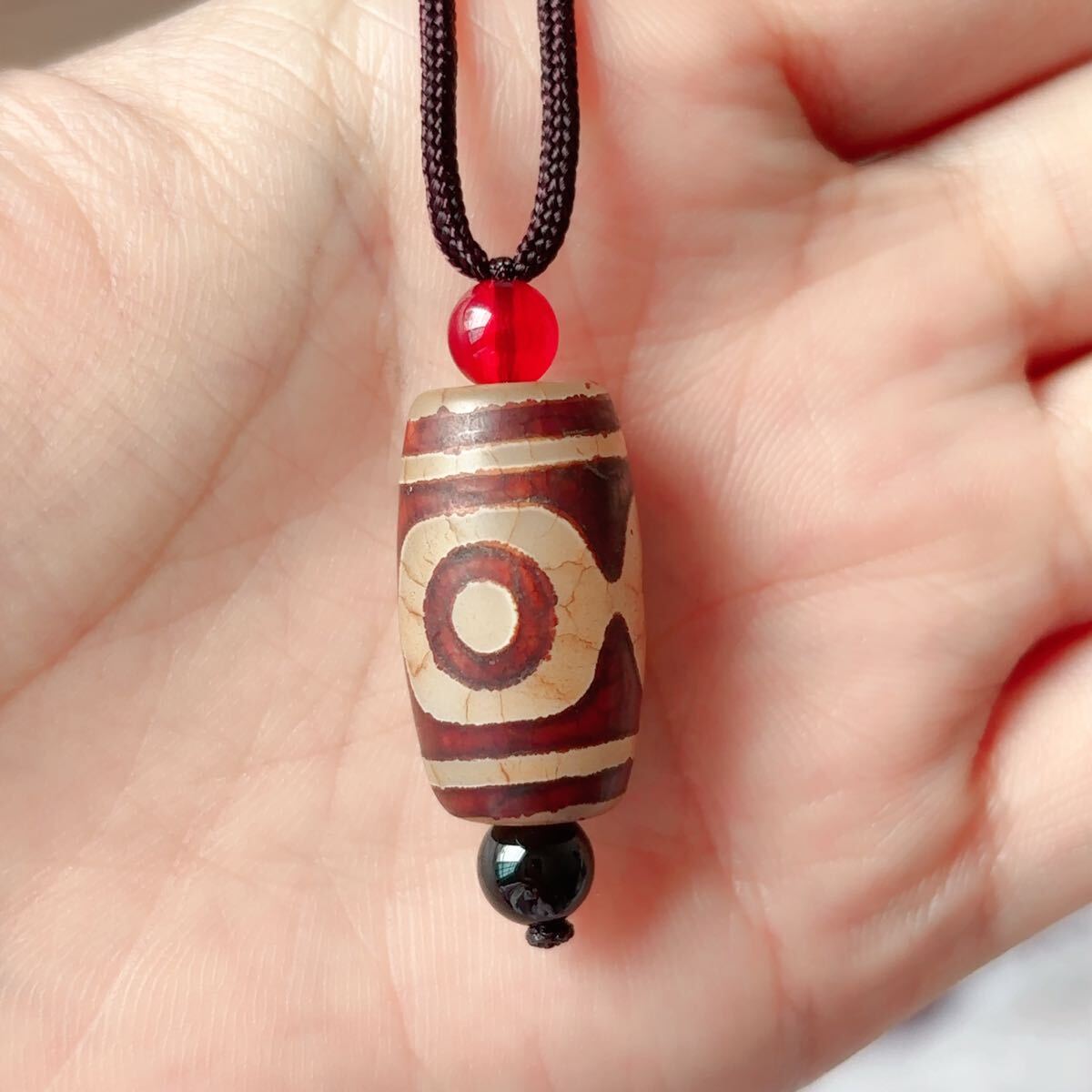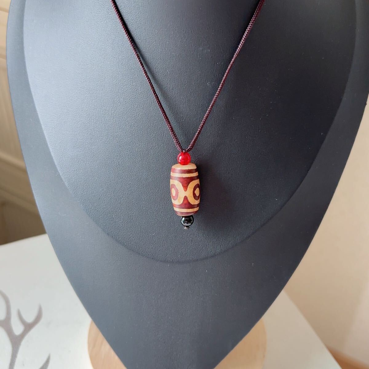 ♪三目天珠♪瑪瑙♪ネックレス♪ペンダント♪天然石♪パワーストーン♪巾着袋付き♪プレゼントにも P2992512
