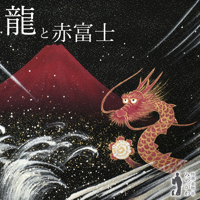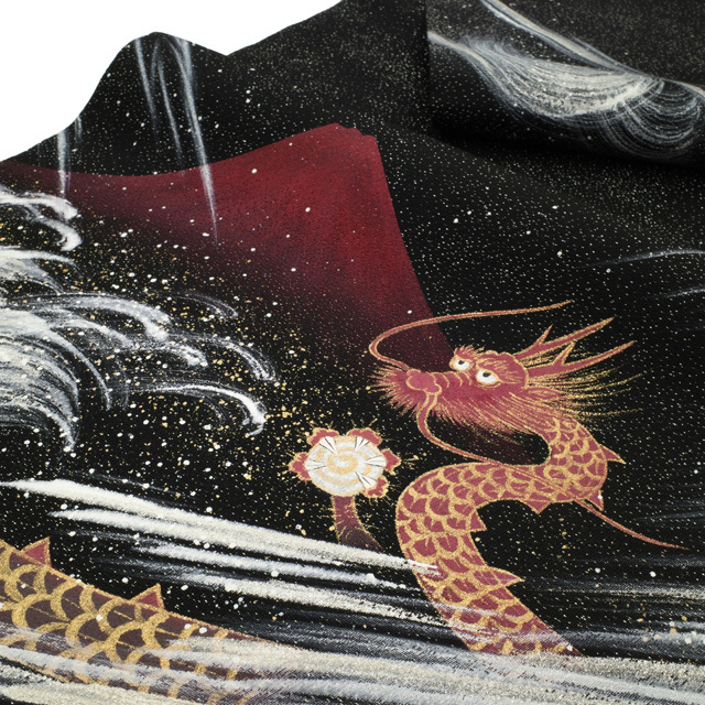 大胆かつ繊細な筆致で描かれた、龍と赤富士の幻想世界・・・