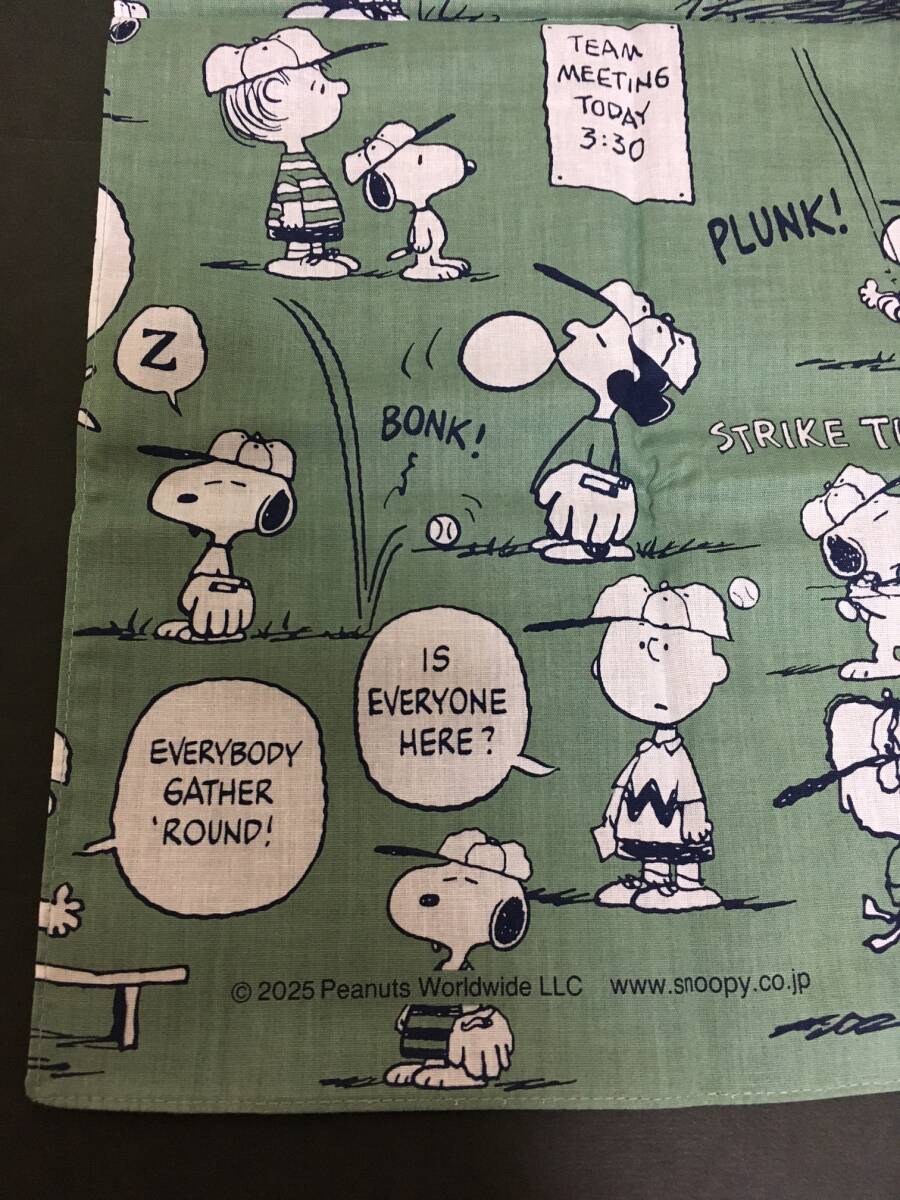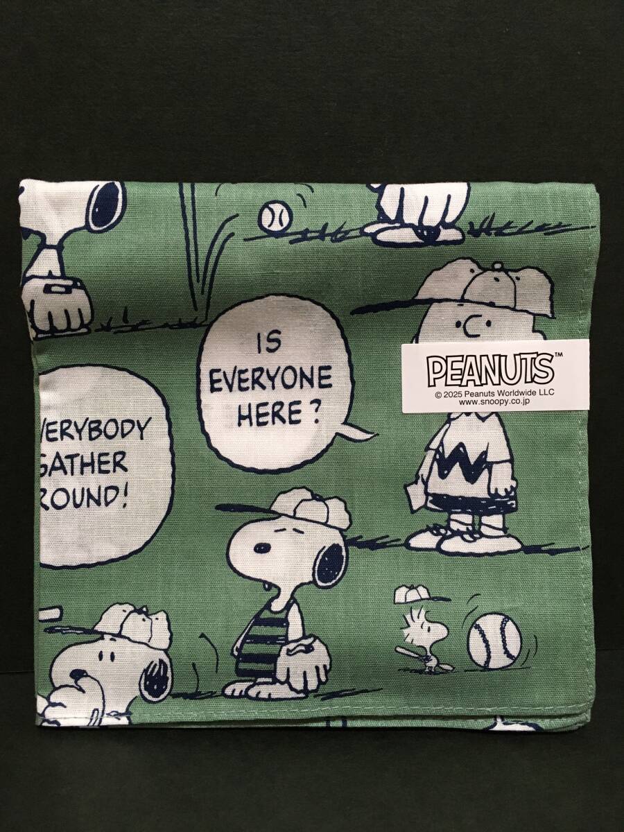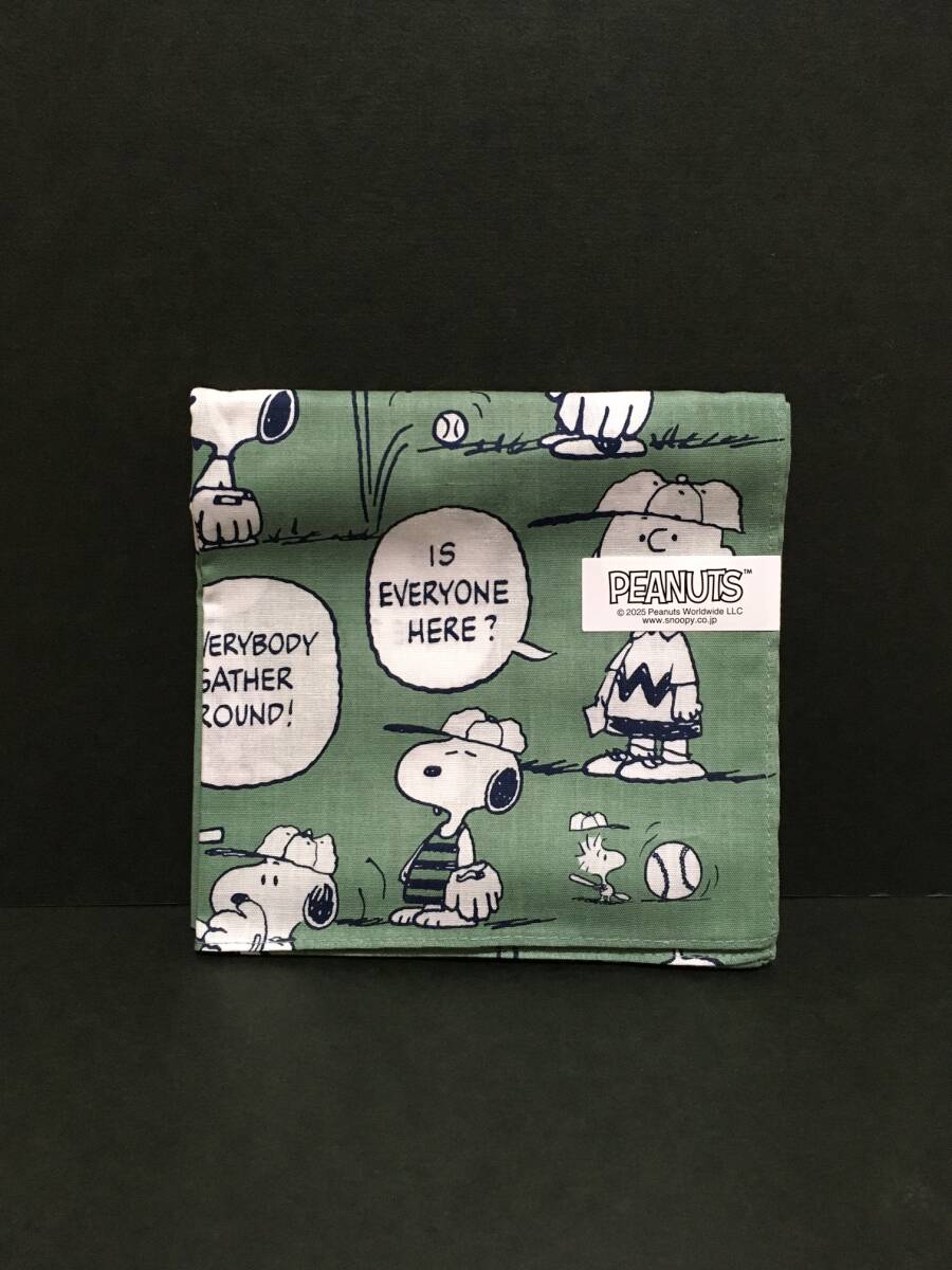 PEANUTS★スヌーピー バンダナハンカチ☆彡 ベースボール グリーン☆ ハンカチ ランチクロス ランチョンマット 新品 川辺 SNOOPY