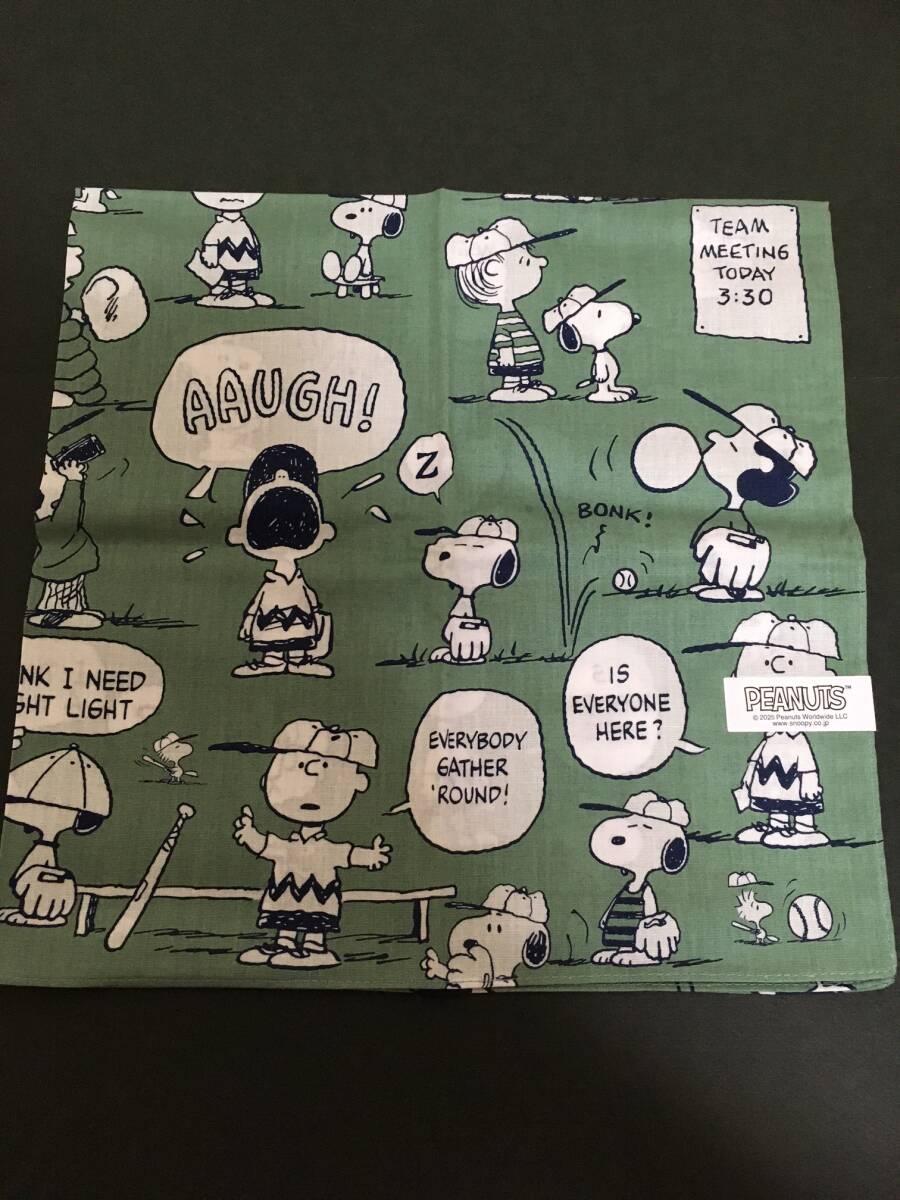 PEANUTS★スヌーピー ベースボール グリーン色のバンダナハンカチです☆彡