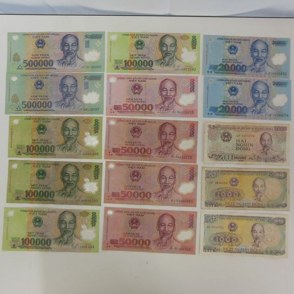 ベトナム紙幣 計15枚 計1,644,000ドン分 海外旧紙幣 外国旧紙幣 お安くどうぞ
