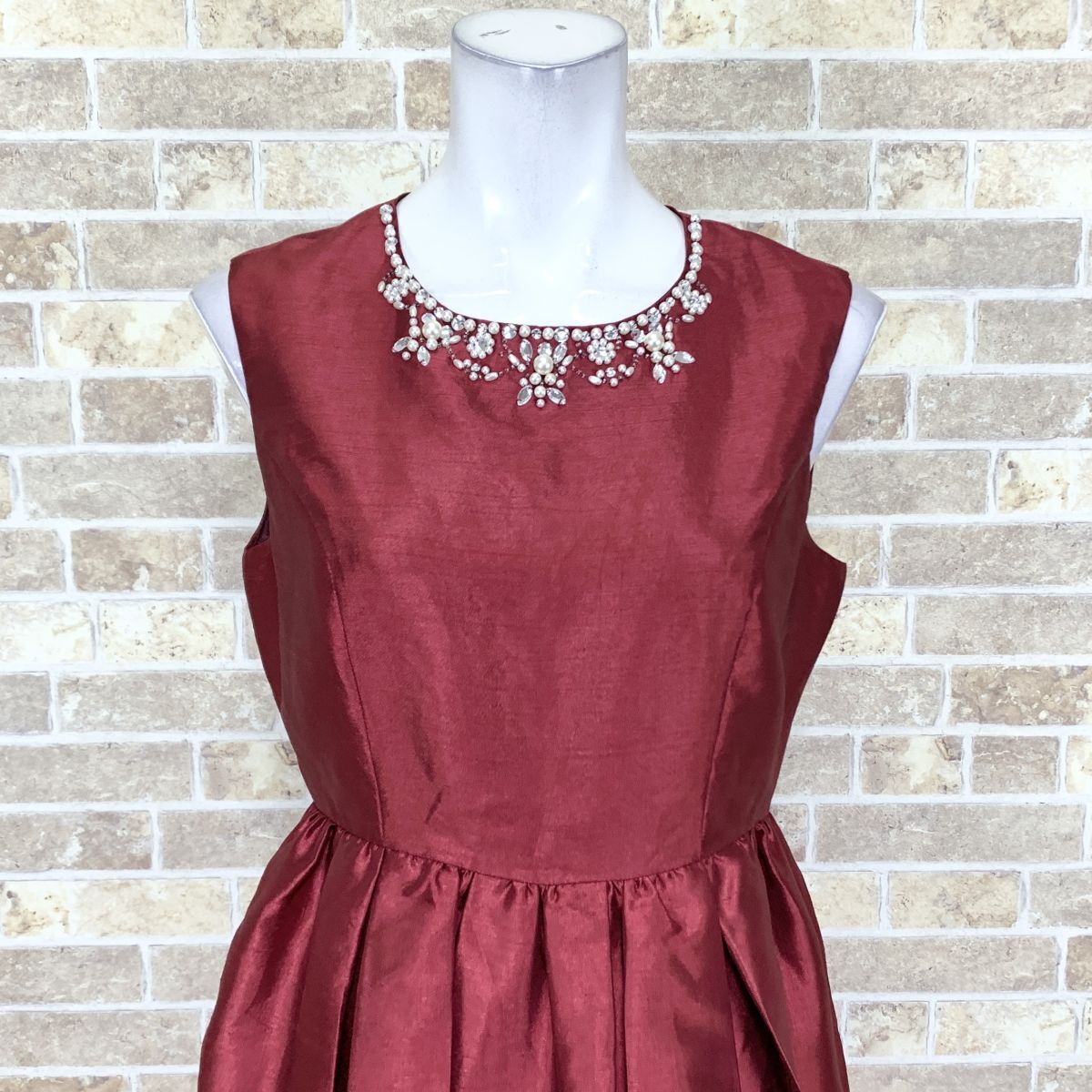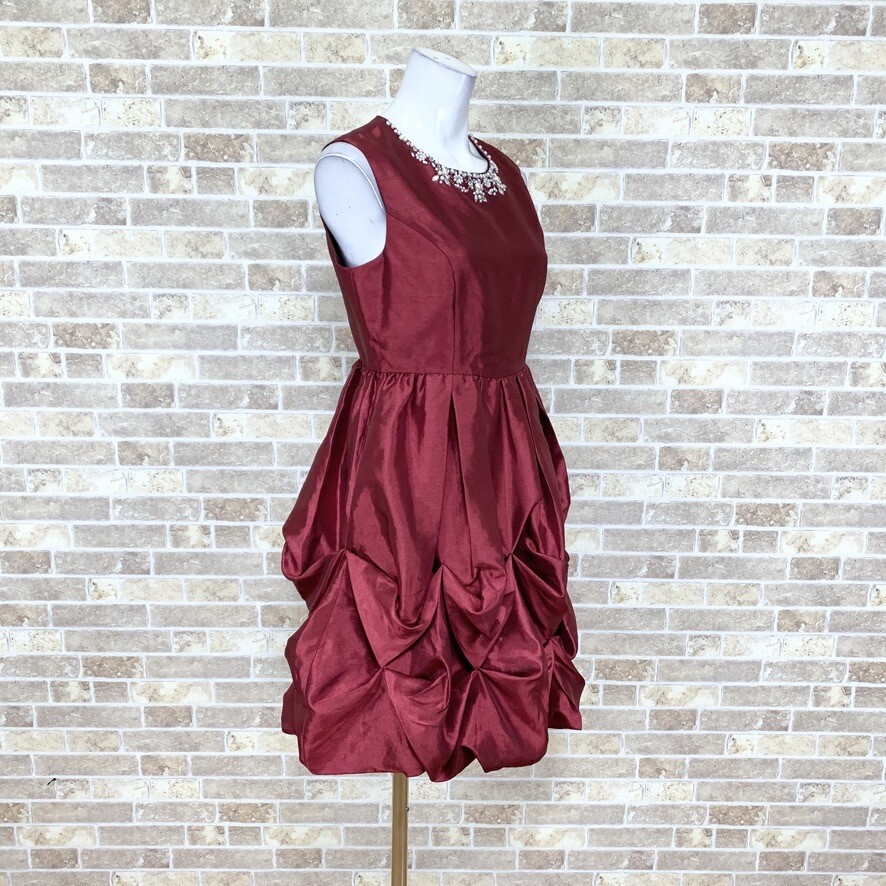 1円 ドレス MISCH MASCH ワンピース M 赤えんじ系 カラードレス キャバドレ 発表会 イベント 中古14593