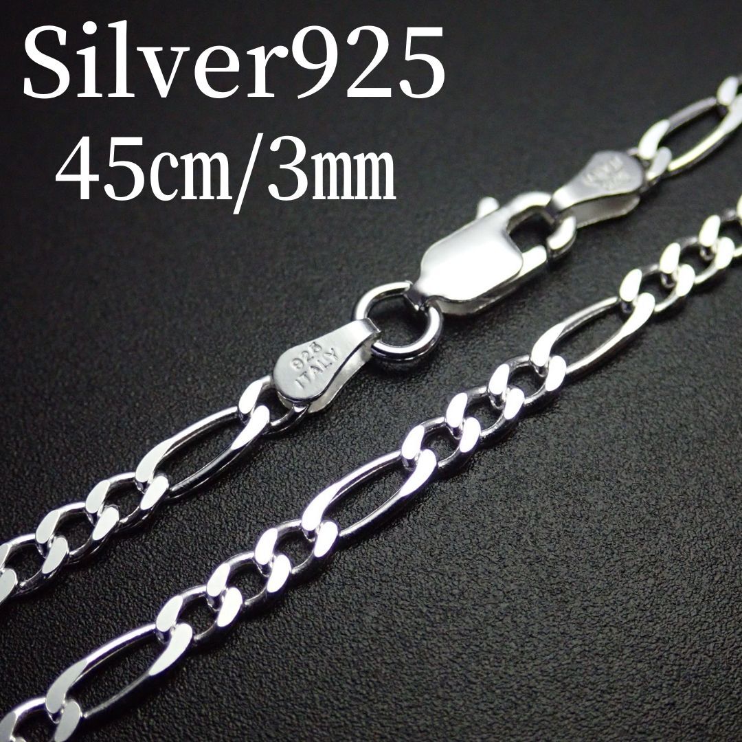 45㎝幅3㎜【フィガロ】 イタリアン シルバー925 ネックレス SiQu