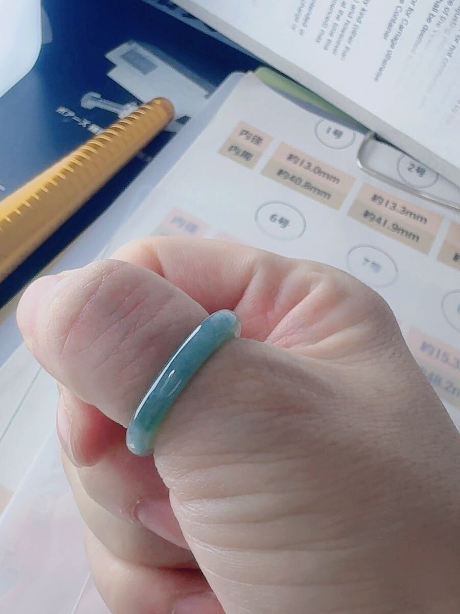 R2-02173天然本翡翠《本物保証》 藍水翡翠 指輪約18~19号 一点物 希少 縁起物 お守り 魔除け 昇進 成功 風水 金運 財運 幸運 幸福