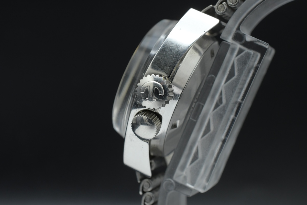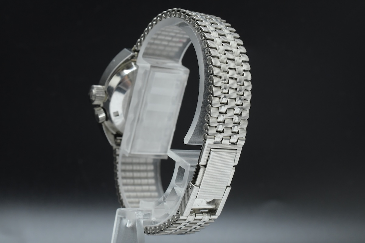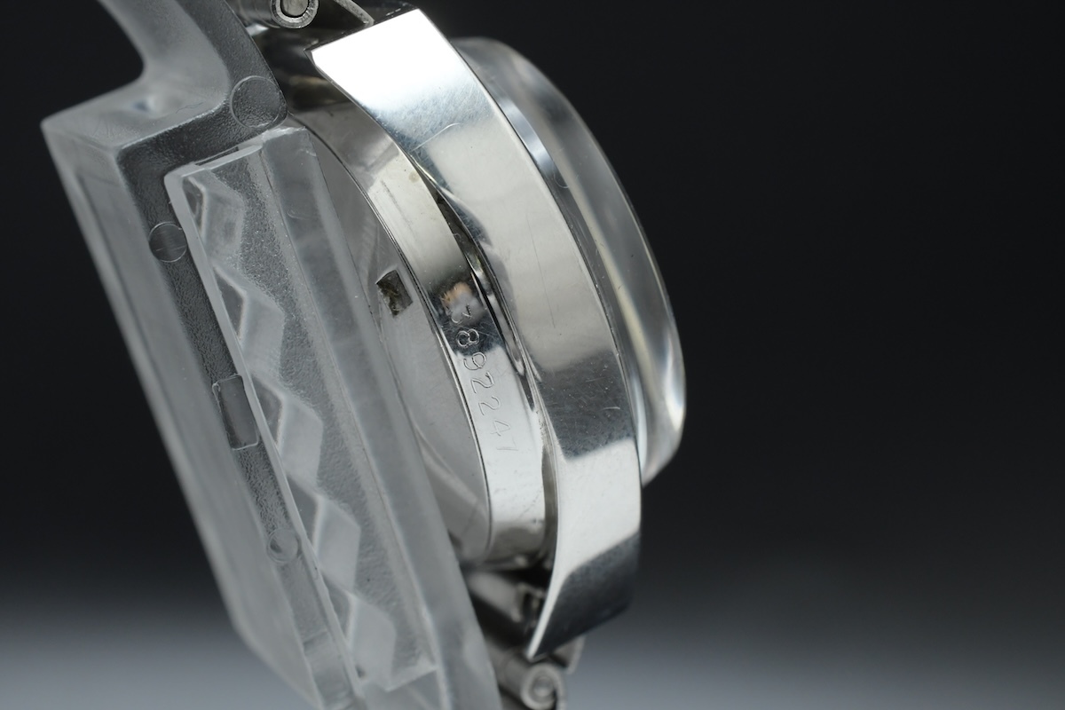 外観 | ※外観についての詳細は、商品画像をご参考にしてください。 ケース全体に細かな使用キズが見られます。 針、インデックスにわずかな点サビが見られます。 文字盤は特筆する劣化は見られず、比較的綺麗な状態を保っています。 文字盤のロゴが欠損しています。 風防全体に細かな使用キズ、スレキズが見られます。 純正金属ブレスが付属します。 ブレス全体に細かな使用キズが見られます。 |
