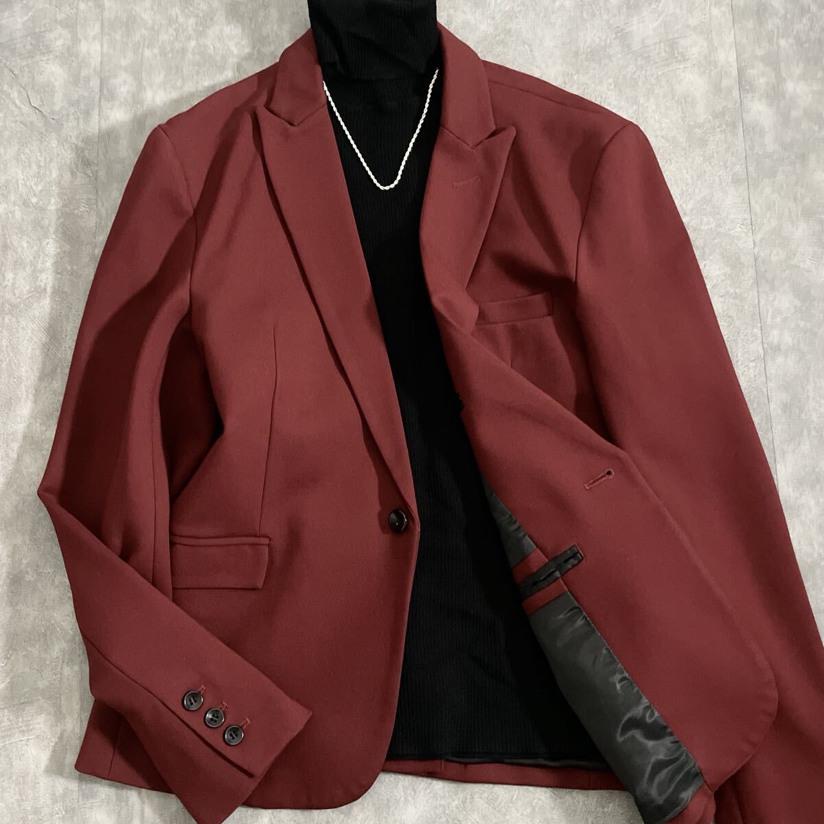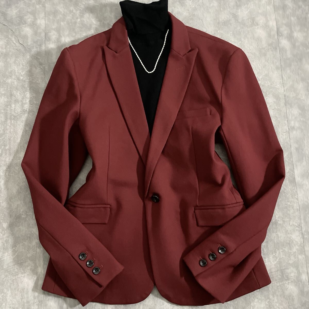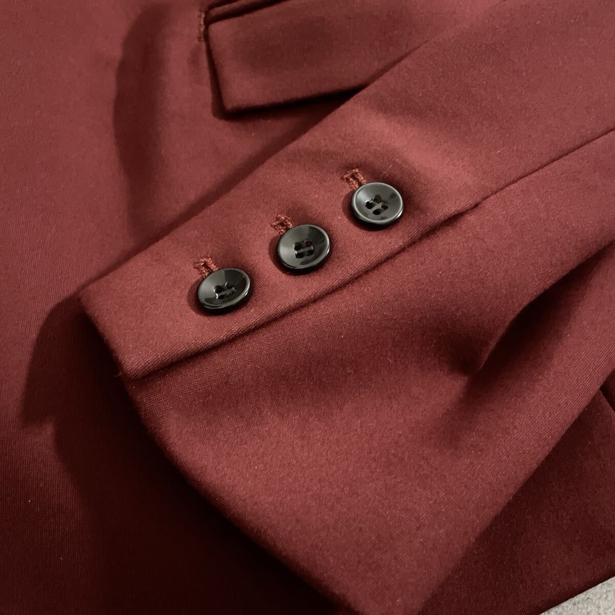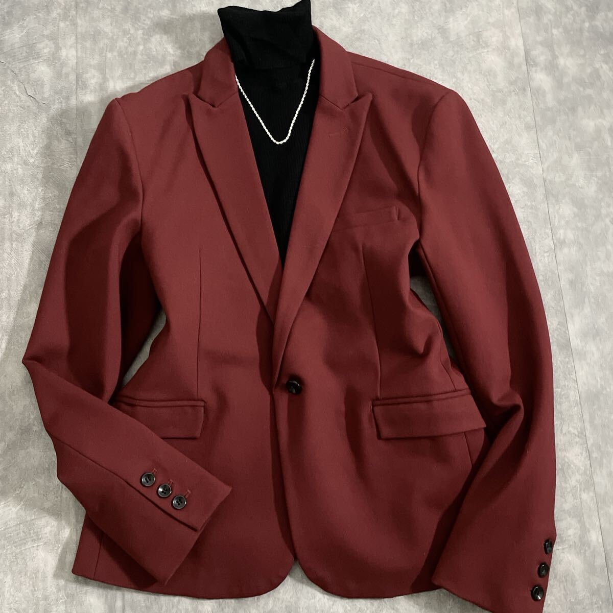 発色のバーガンディーボルドーカラーが目を惹くテーラードジャケットです。