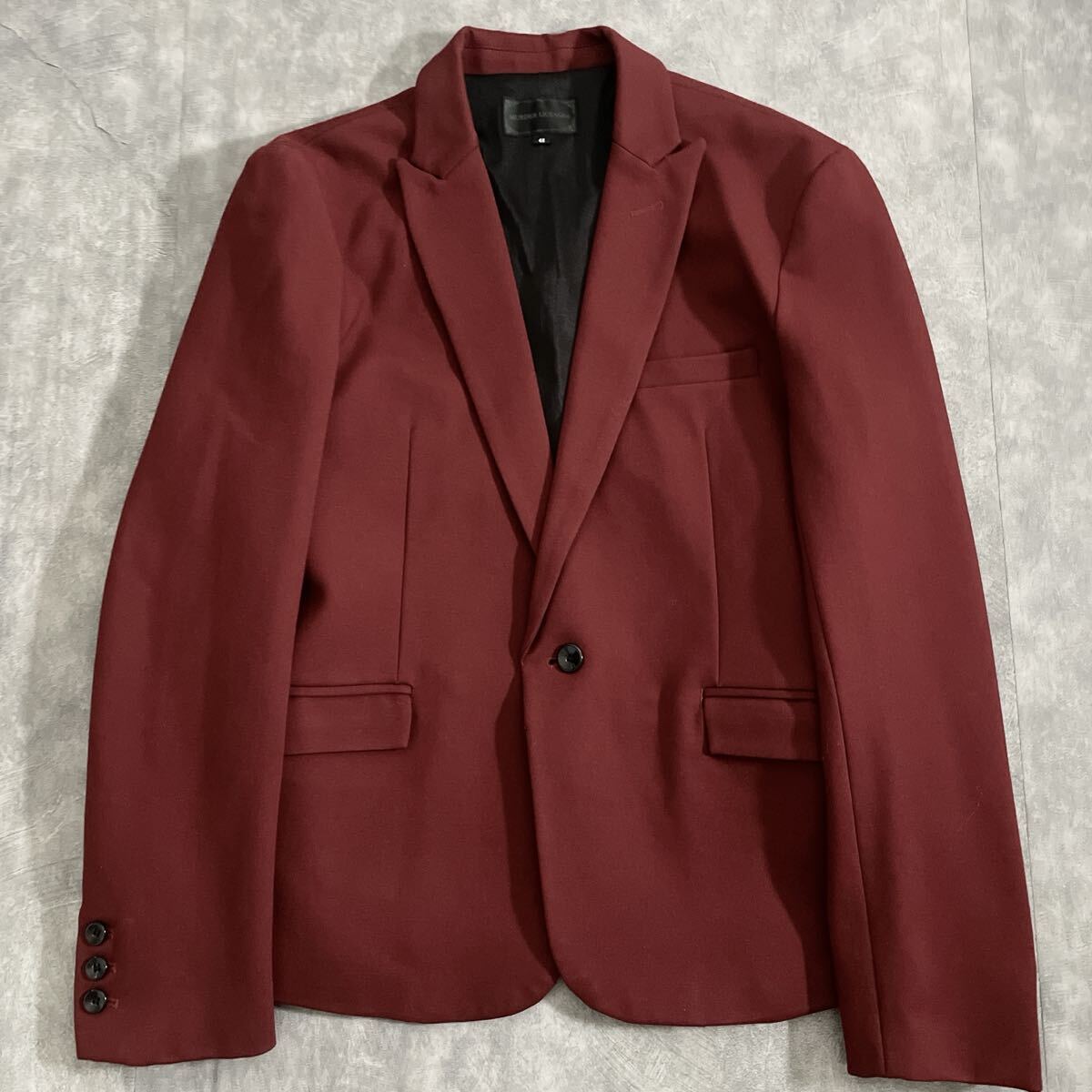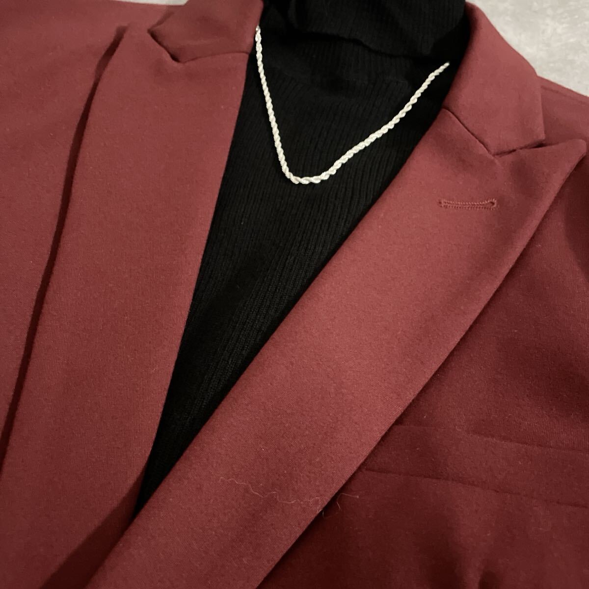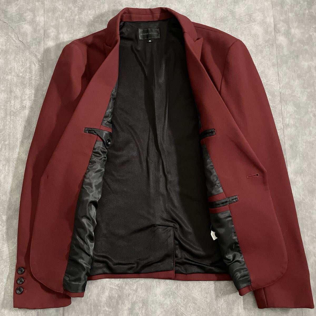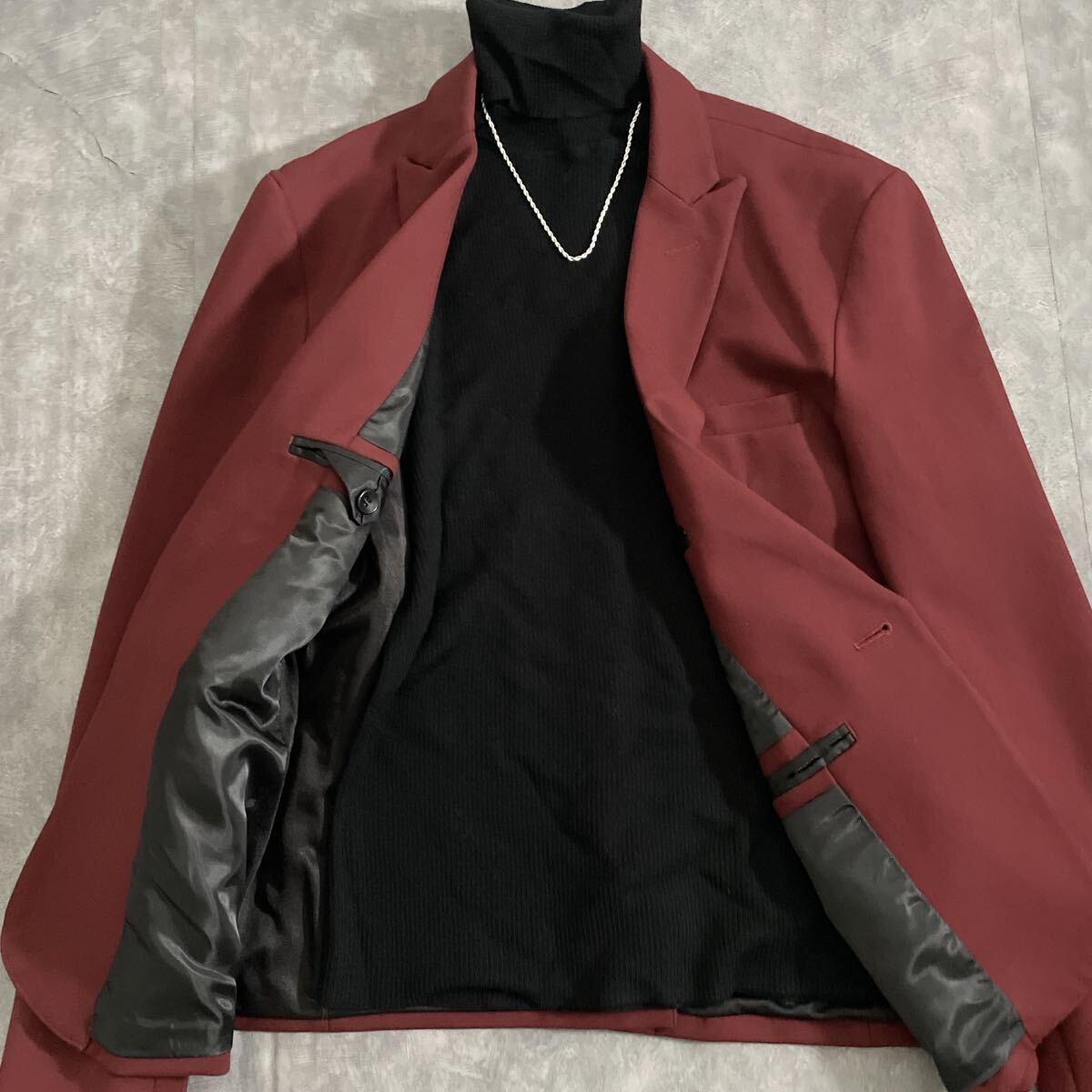 発色のバーガンディーボルドーカラーが目を惹くテーラードジャケットです。