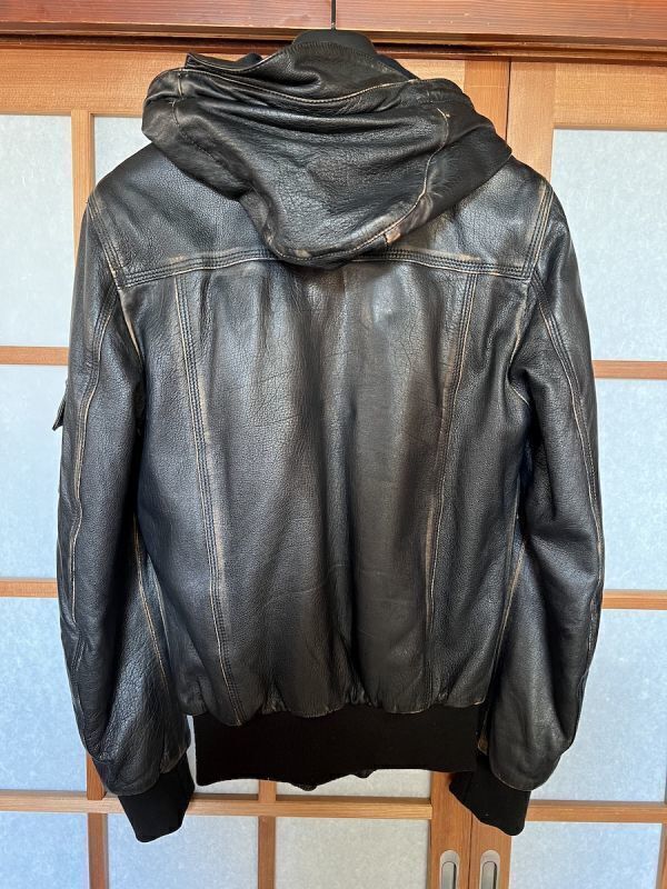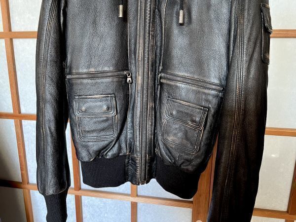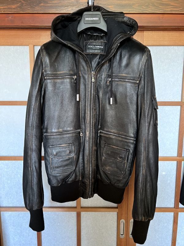 DOLCE&GABBANA マルチポケット ヴィンテージ 中綿入りシープレザーパーカー 44