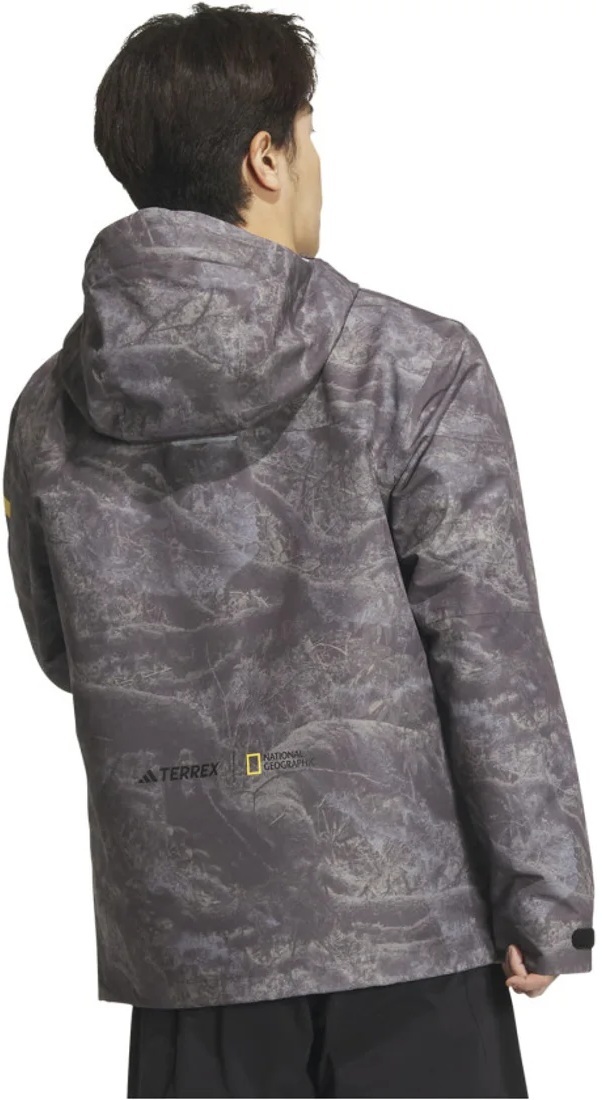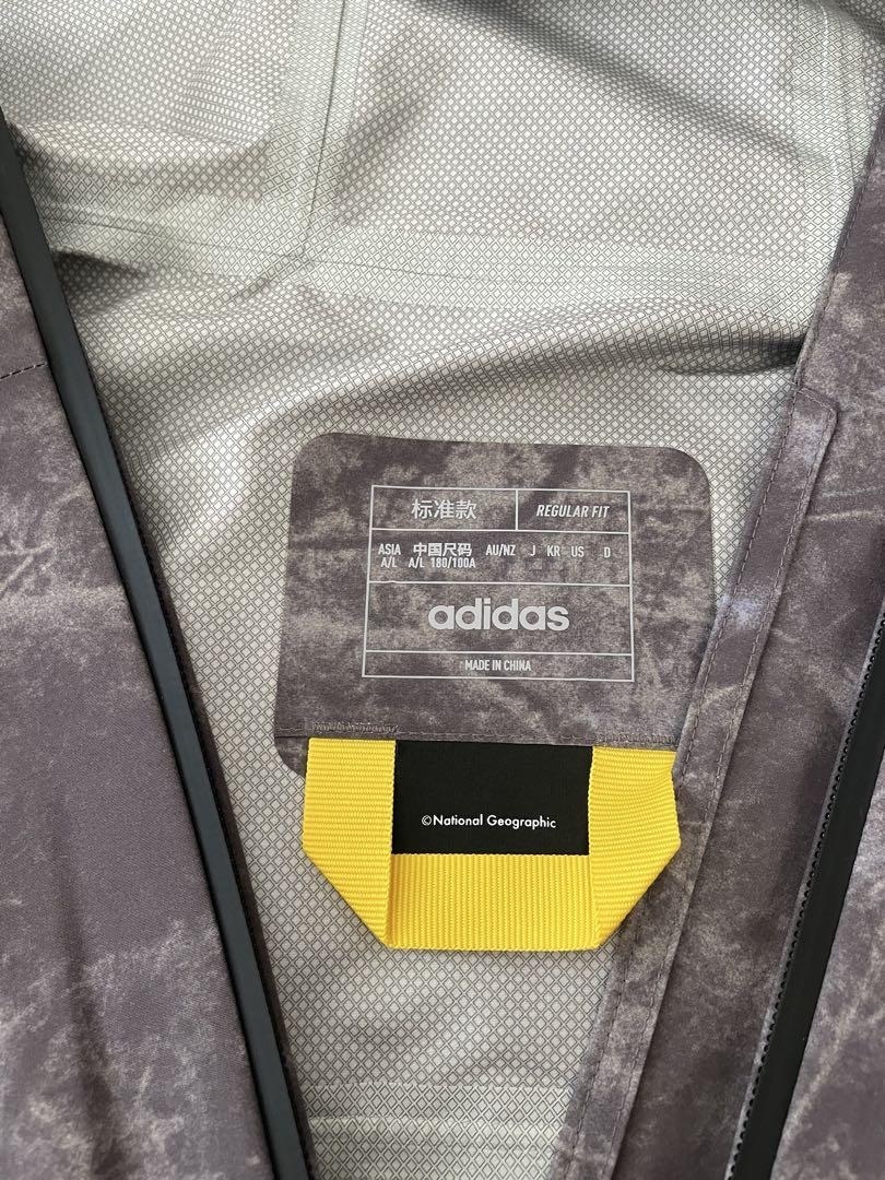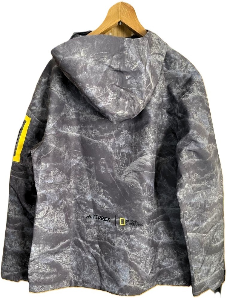 【adidas TERREX】★ナショナル ジオグラフィック/NATIONAL GEOGRAPHIC★完全防水・再帰反射・RAIN. RDY・ジャケット【●新品未着用タグ付き●】品番:IS9512、定価:30,800円。表記サイズ:L、チェスト93~96cm、身幅57.5cm、肩幅51cm、着丈70.5cm(背面)、袖丈65cm。生地:ポリエステル100%。