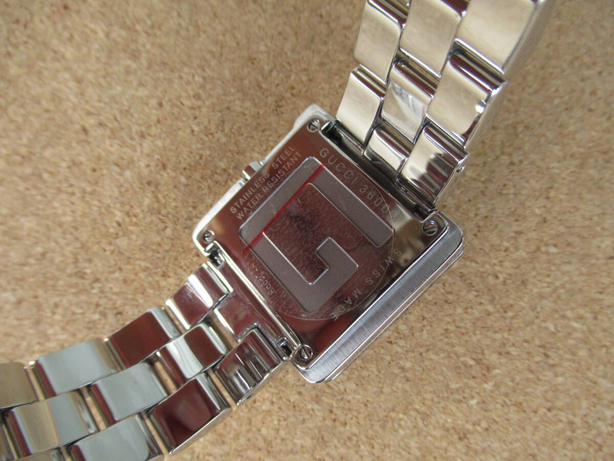 GUCCI レア物ビッグサイズGウォッチ 3600M 黒文字盤 女性にもお勧め 外装リフレッシュ済みの超美品 電池交換済み 付属品付 激安 !!