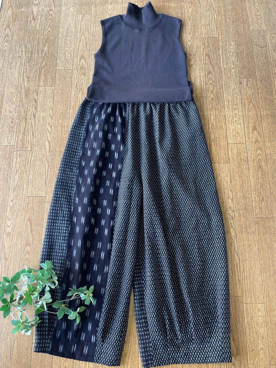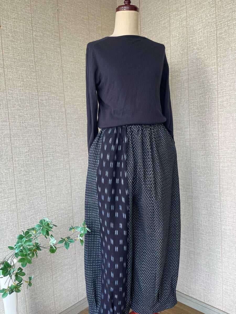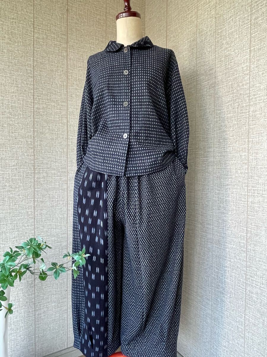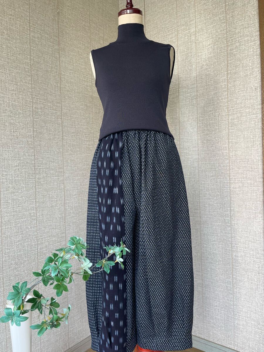 ★blue-sky/古布/着物リメイク/藍染木綿・久留米書生/バルーンパンツ/ハンドメイド★