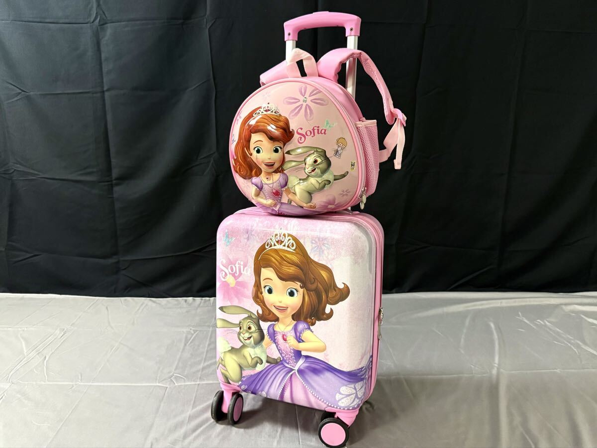 かわいいディズニープリンセス「ちいさなプリンセス ソフィア」がデザインされた、子供用キャリーケースとリュックの2点セットです。