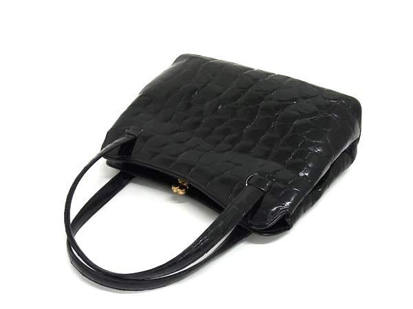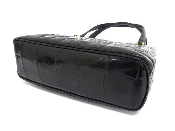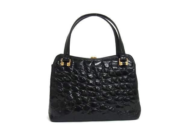 1円 ■極上■本物■ クロコダイル がま口 ハンドバッグ トートバッグ レディース ブラック系 BS0850