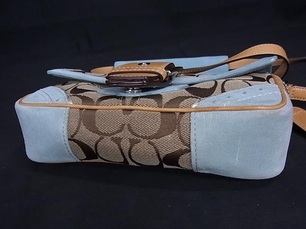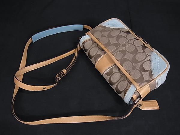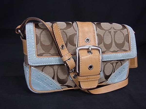 1円 COACH コーチ 1459 シグネチャー キャンバス×レザー クロスボディ ショルダーバッグ 斜め掛け ブラウン系×ライトブルー系 BM9347