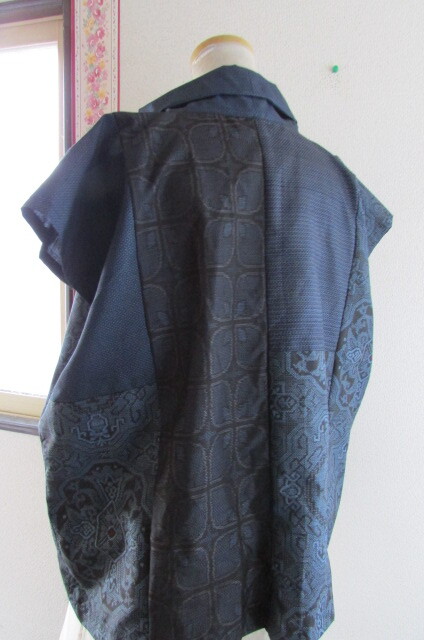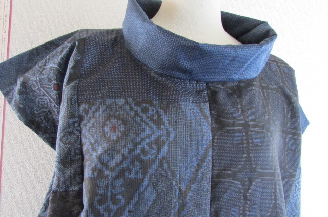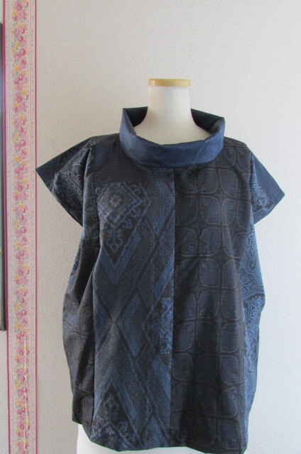着物リメイク☆大島紬よりロールカラーブラウス