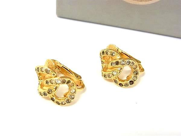 1円 ChristianDior クリスチャンディオール ヴィンテージ ラインストーン イヤリング アクセサリー レディース ゴールド系 BS0301