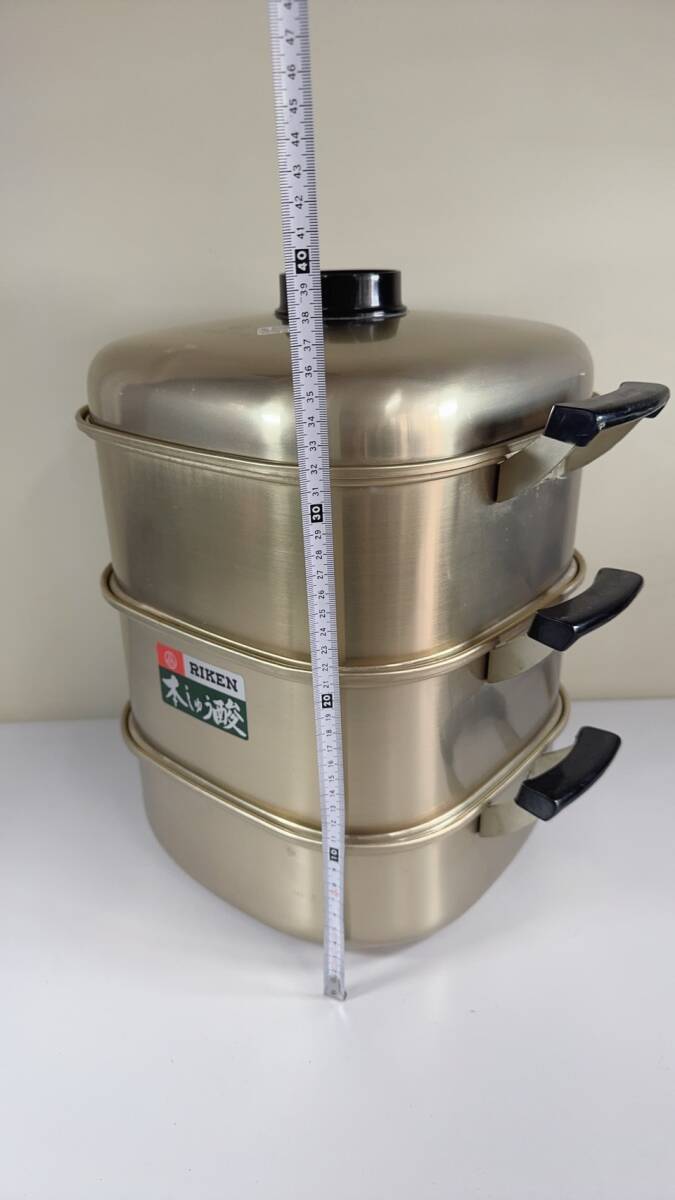 蒸し器 3段 26cmレトロ 昭和 RIKEN 角蒸し アルミ 理研軽金属工業株式会社・本しゅう酸 現状渡し品 送料無料 |