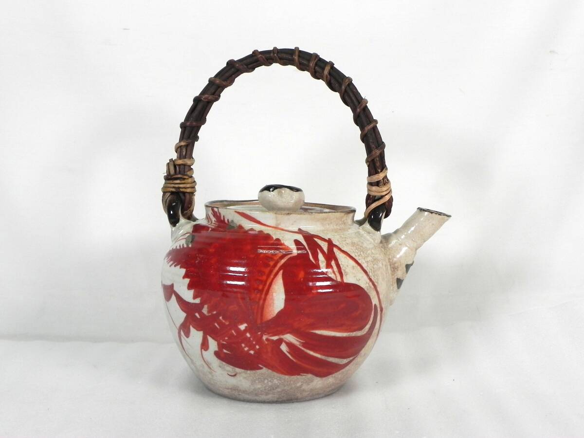 [R4866]清水六兵衛作 土瓶 湯沸 伊勢海老図 色絵 急須