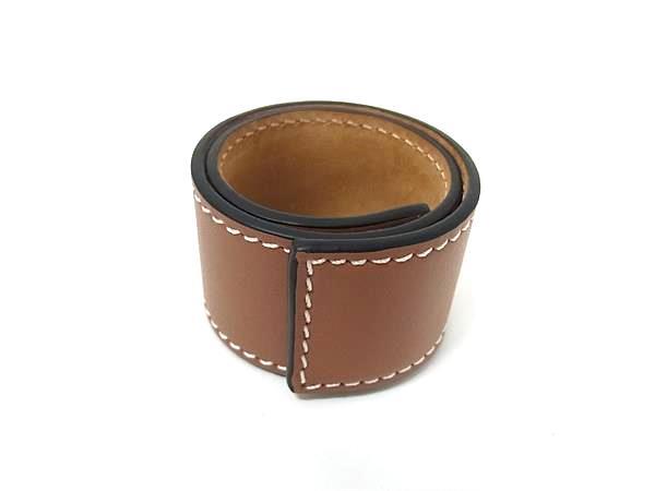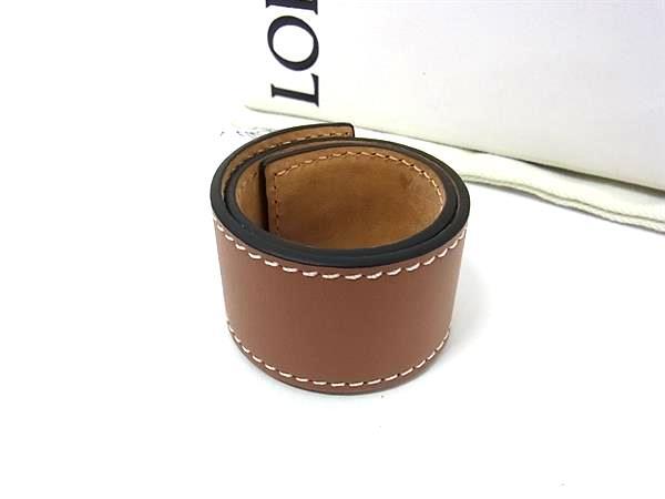 1円 ■美品■ LOEWE ロエベ アナグラム スラップ レザー ブレスレット バングル アクセサリー ブラウン系 FP6680