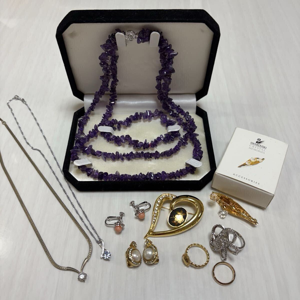 ネックレス、イヤリング、リング、ブローチを含んだアクセサリー10点のおまとめ品となります。
