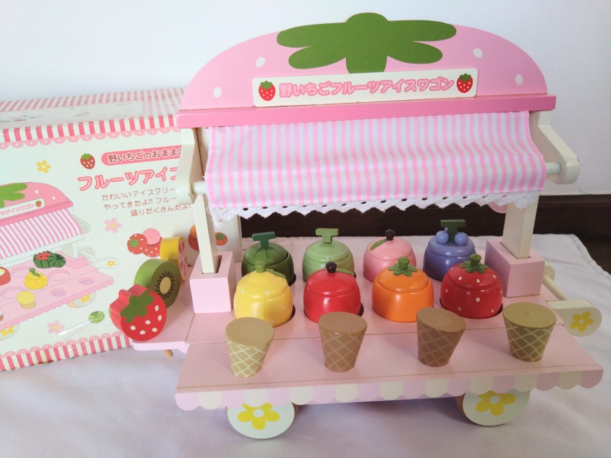 木製のおままごとセット「野いちご フルーツアイスワゴン」です。