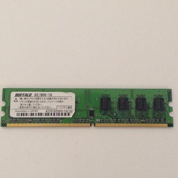 | ★商品説明★ | 取引トラブルを防ぐ為、必ずこちらへアクセスして下さい。 写真は使い回しとなりますので、実際にお送りするものはラベル・チップ等が異なる場合も御座います。 ■仕様一覧 デスクトップPC用メモリー ※メーカー:Buffalo ※状態:中古品 ※容量:1GB ※メモリータイプ:DDR2-800 ※チップ規格:PC2-6400 ※数量:1枚 ご注意:こちらの商品は動作確認済となりますが、パソコンとの相性は保証致しませんので、よく適用機種をご確認の上、ご購入をご検討下さい。 相性保証の商品につきましては、メールにてお気軽にお問い合わせ下さい。 | |