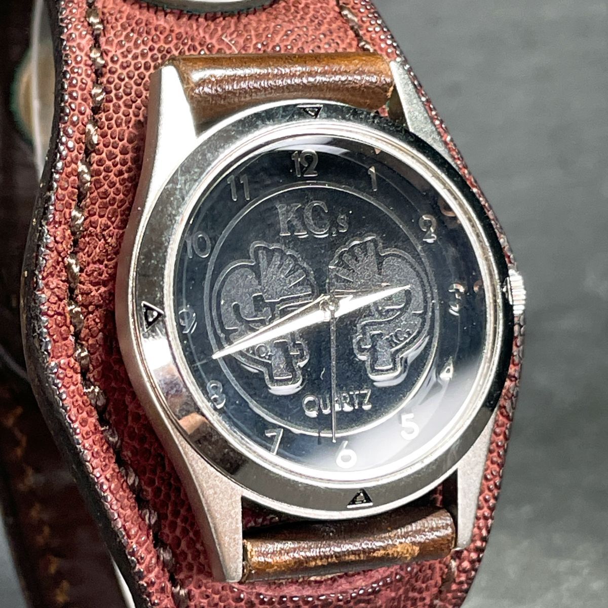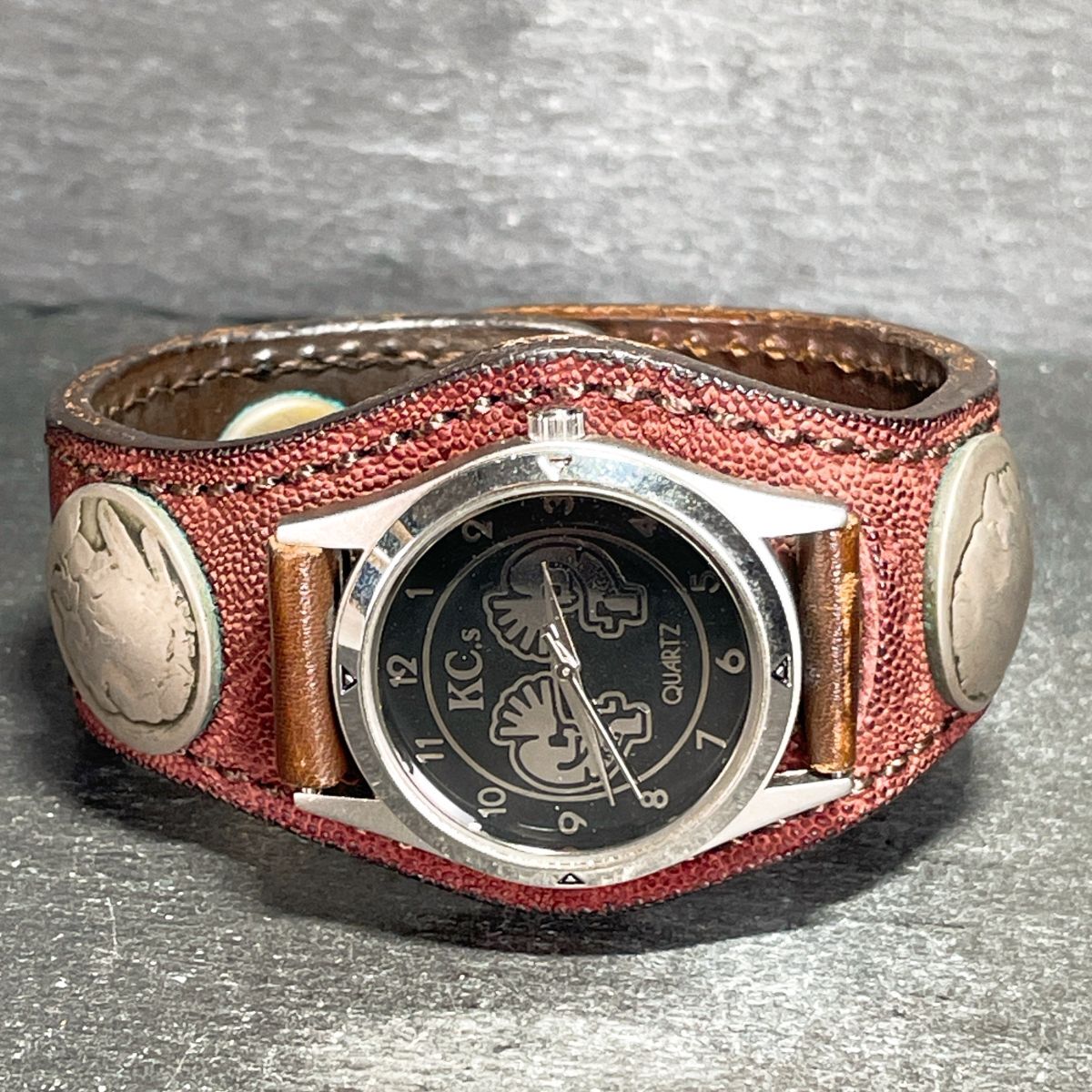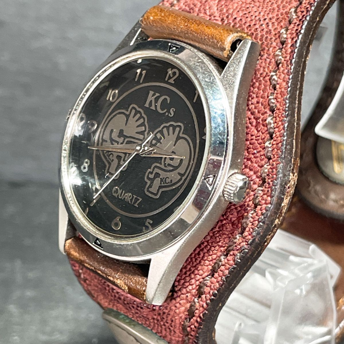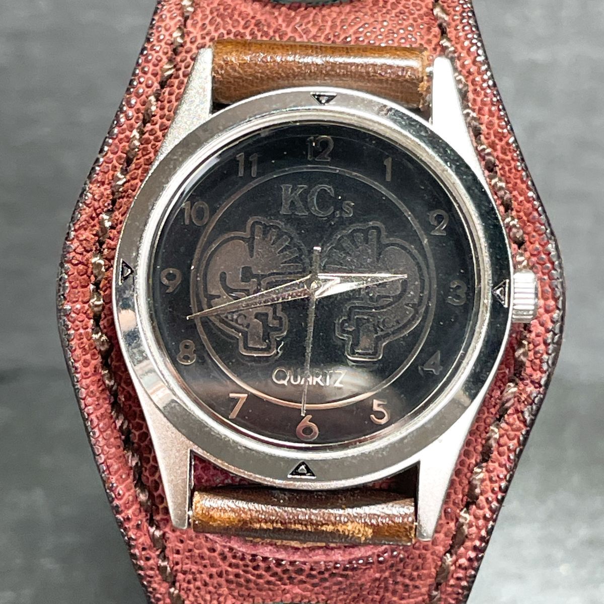 美品 KC.s ケイシイズ 腕時計 アナログ クオーツ 3針 ブラック文字盤 ラウンド レザーバンド ユニセックス 新品電池交換済み 動作確認済み