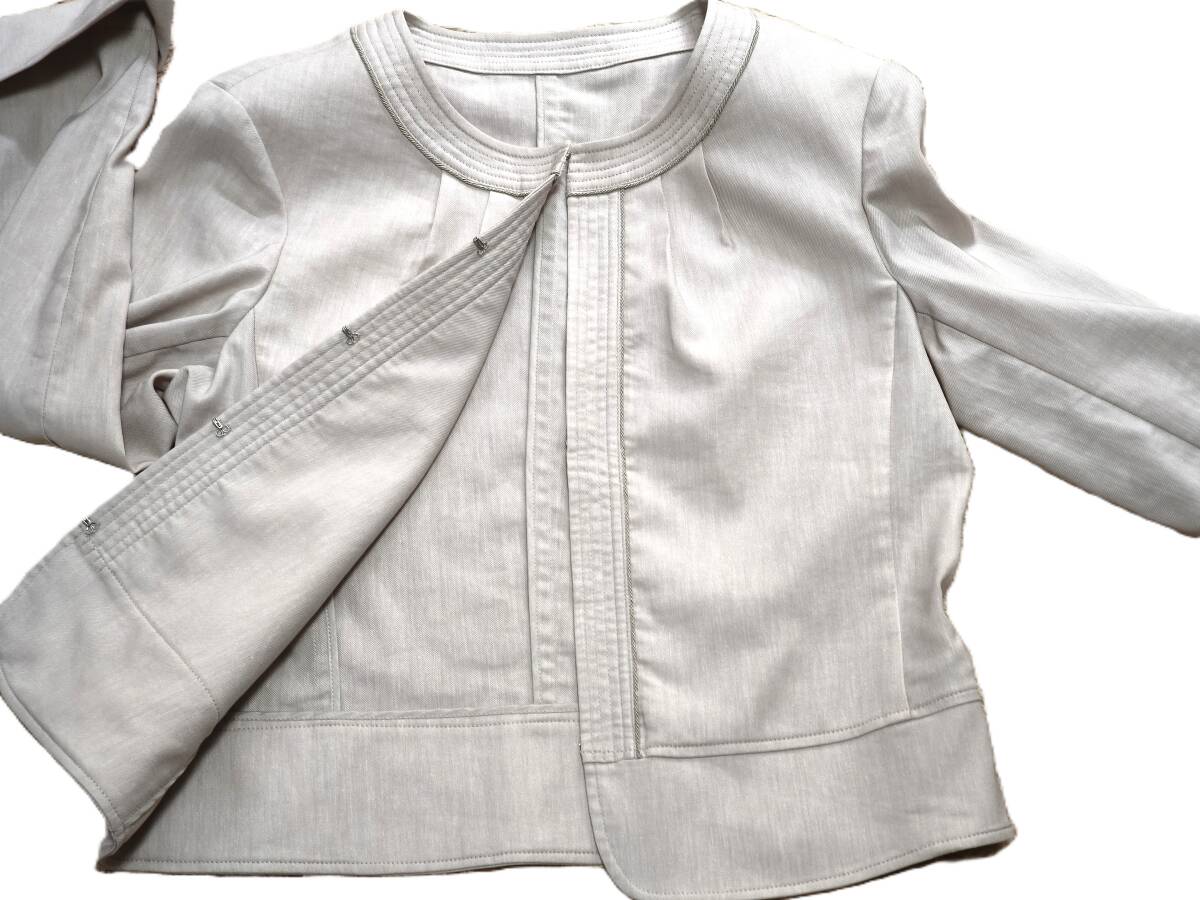 ご覧頂きありがとうございます。 | ★新同美品激安★23区ベージュ丸襟ノーカラージャケット38♪ちょっと羽織るのに便利♪麻混薄手上品ジャケS~M |