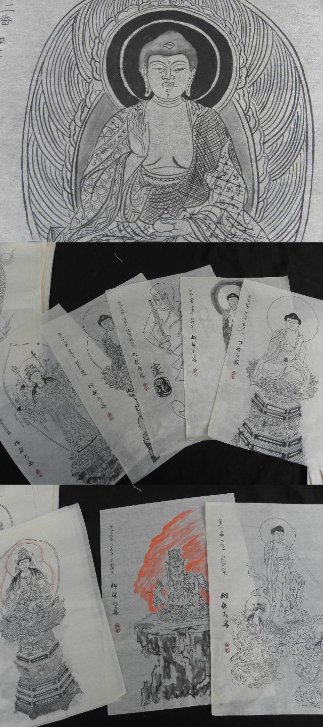 30 肉筆画 四国八十八ヶ所霊場 仏画 まくり 88枚 まとめて / 仏教美術 仏像 お遍路 アート 御朱印帳 仏教 寺院 札所 参拝 御札 護符