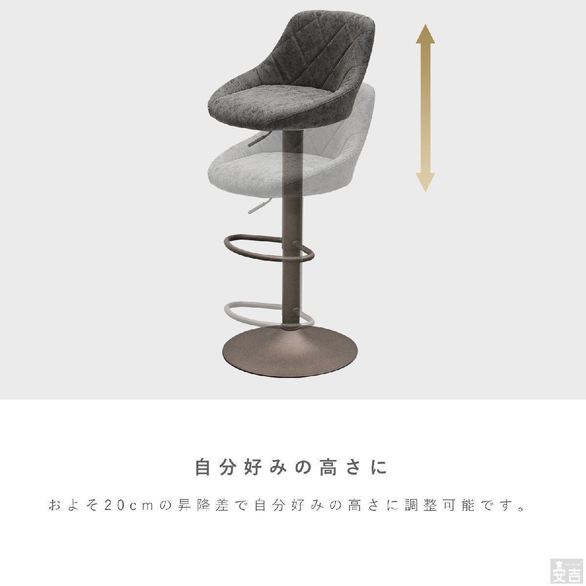 | 特長 | ・座面は360回転機構付き! ・包まれるような背もたれ付きのカウンターチェア。 ・クッション厚み80mmのふかふかカウンターチェア。 |