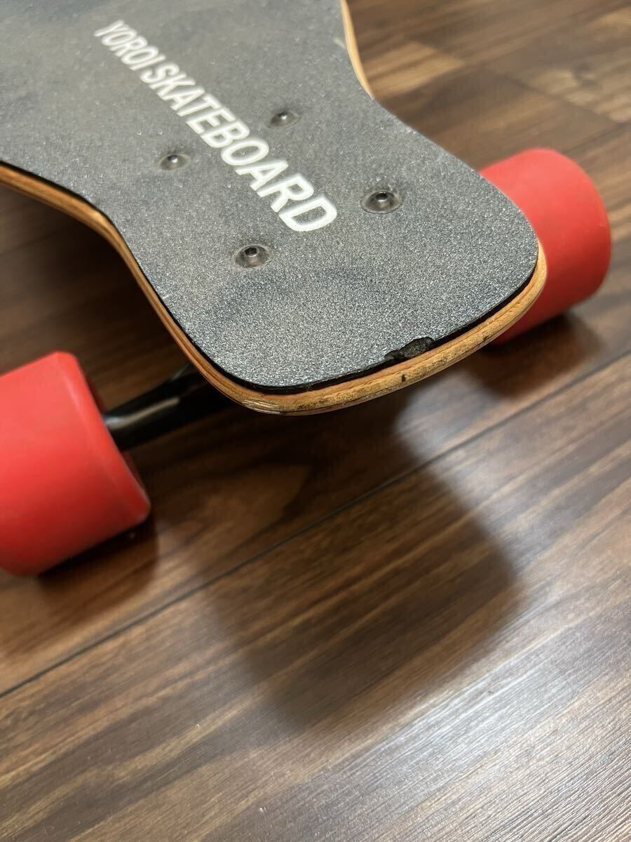 YOROIプロテクターと同様、細部に気を配った特別な仕様。スノーボードを年中楽しみたいと思っているユーザーにしっくりくるデ ッキとパーツ構成。 乗り方としては、プッシュしてある程度加速させたら、ボード上でしならす動きを数回試しながら踏み込む感じを確認し、それから体重移動してスラロームに入るようにするとタイミングと必要な動きを把握しやすいようになります。スノーボードでのカーヴィングターン、アップスンダウン、クルージングなどに必要な基礎体力の向上などのスノボ陸トレに向いています。 ボードを踏み込む事でエッジグリップを増したり、踏み込むことでボード をしならせて深いターンを描く。 スノーのオフシーズンの時、陸上にいながらスノーボードに 必要なバランスや動作を覚えられ、楽しくトレーニングすることが、YOROIスケートボード RYU II 38に乗れば可能に。