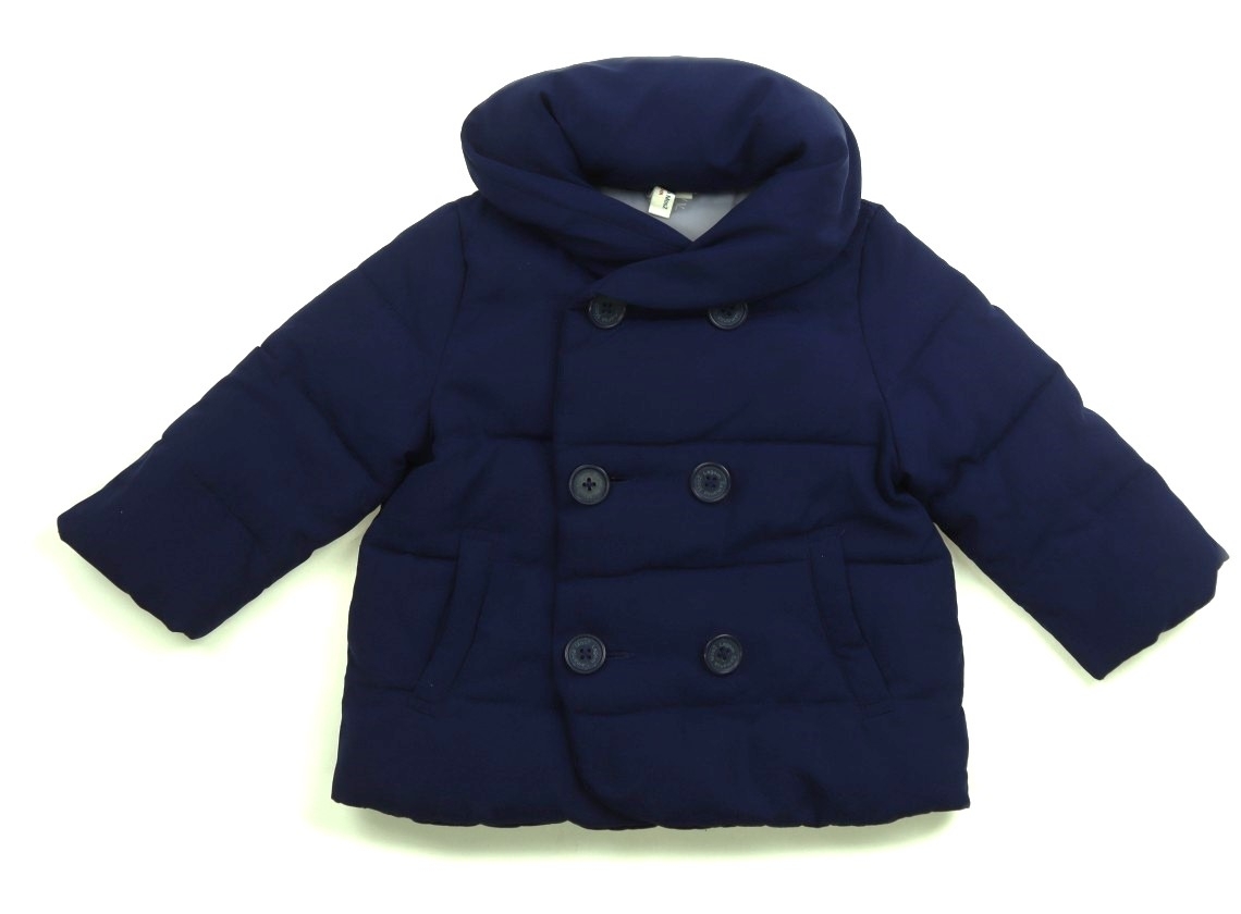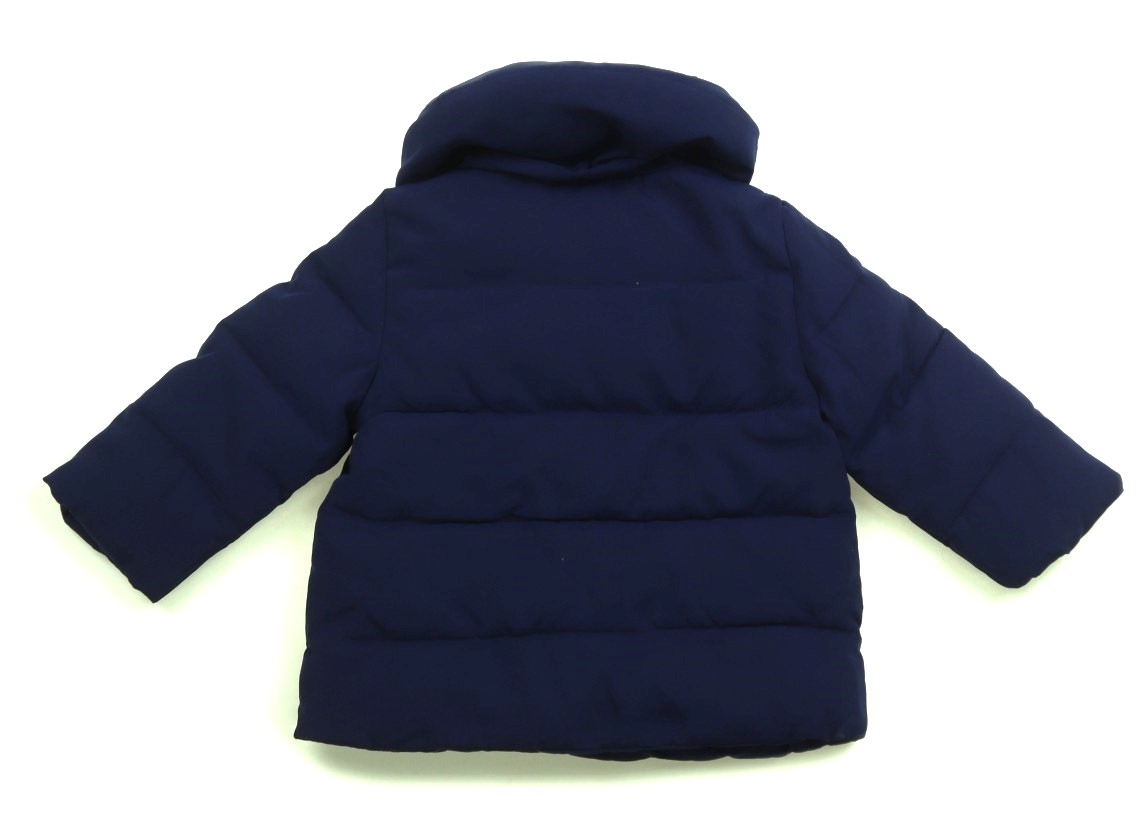 ポリエステル素材。中綿入り。実際のサイズ表記は、S。袖口が薄く汚れています。薄いシミがいくつかあり、白い毛羽の付着が見られます。