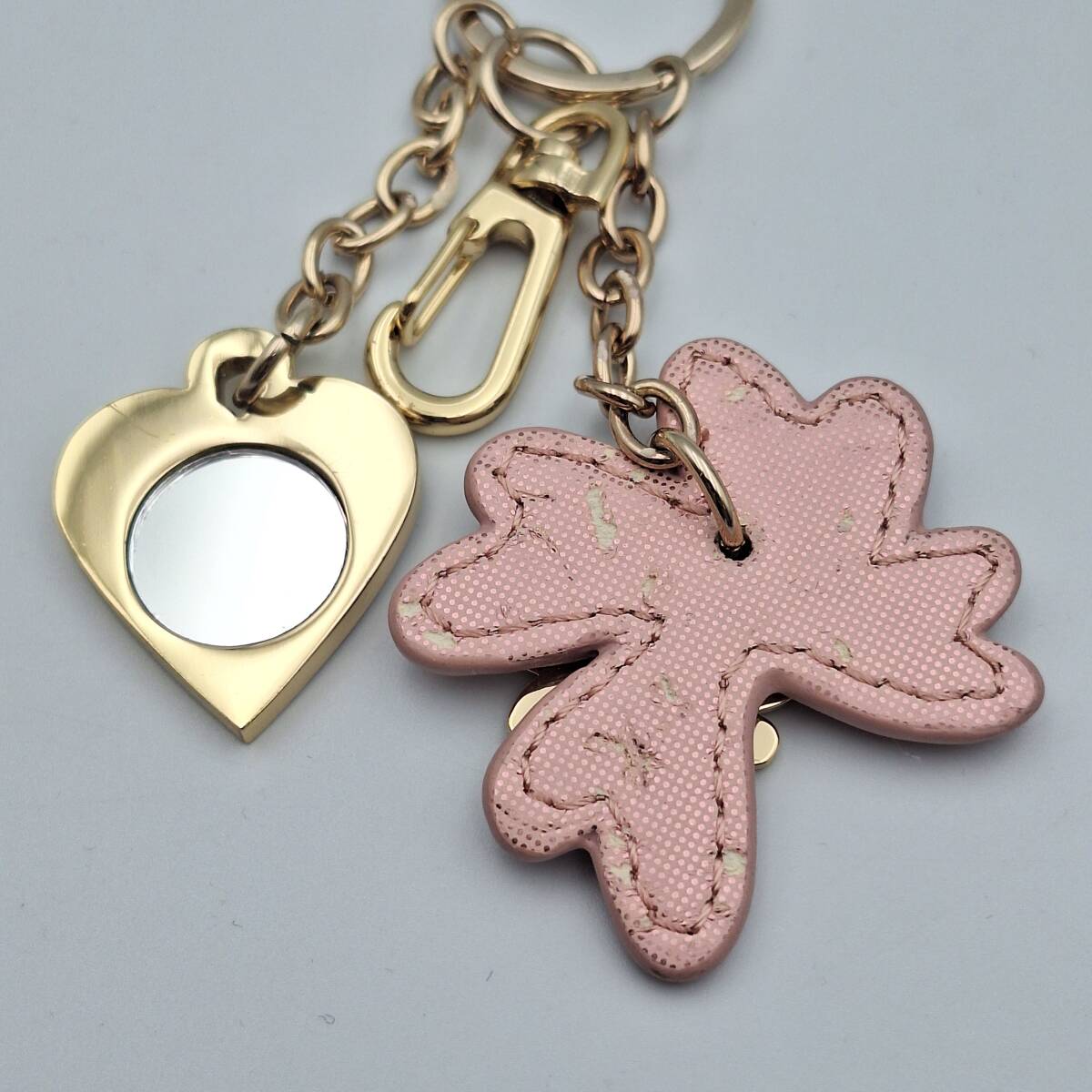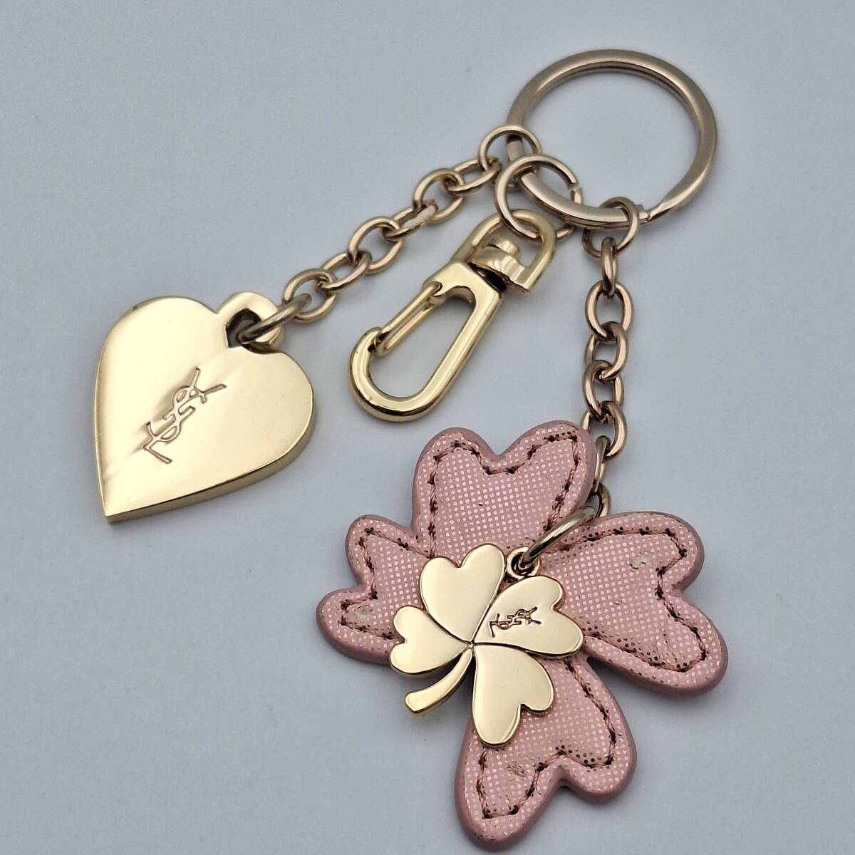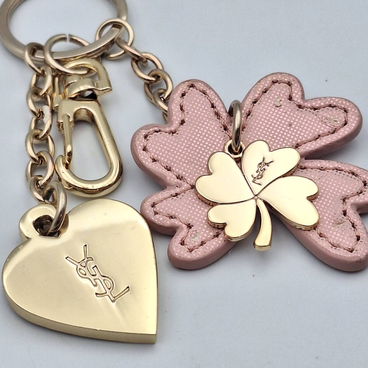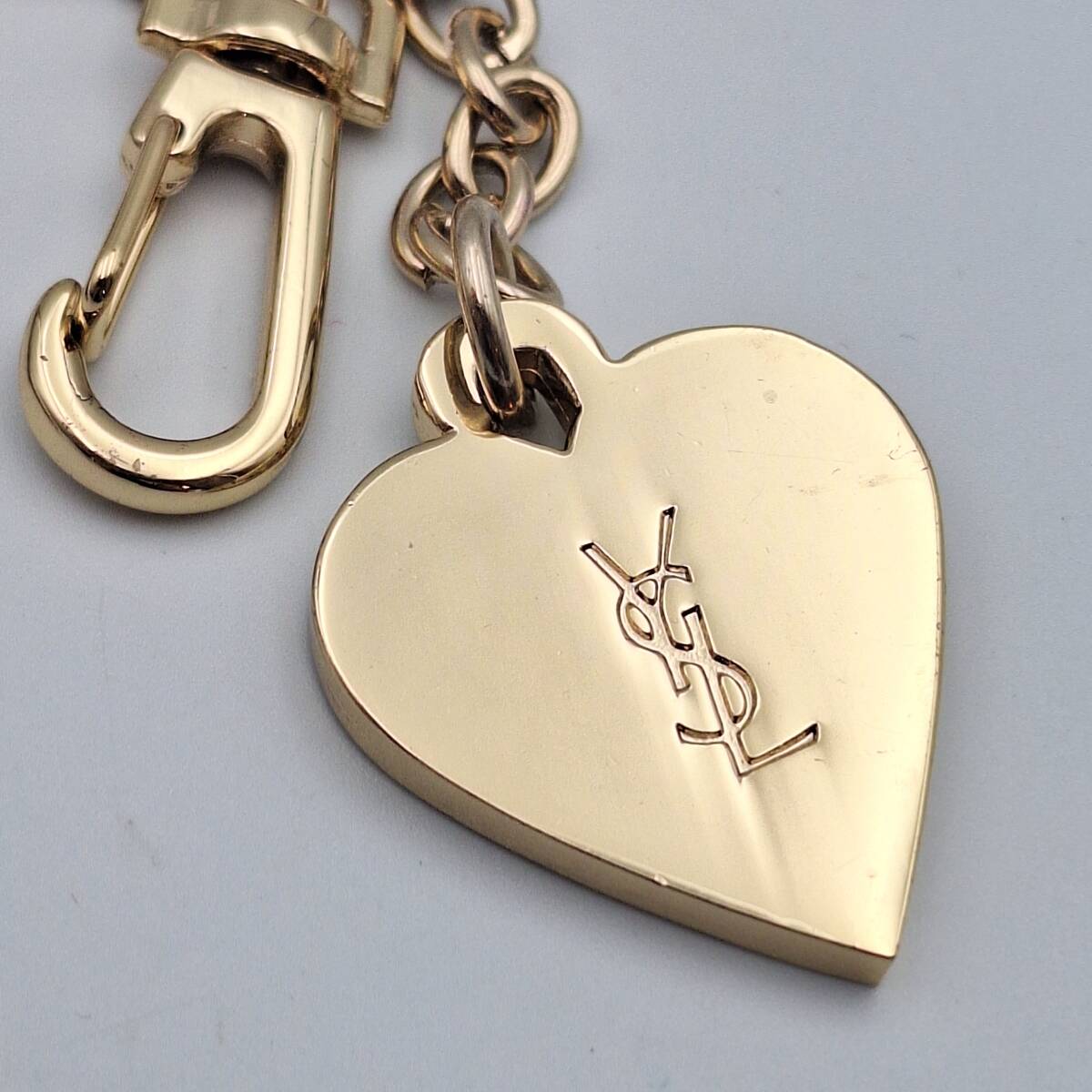サンローラン チャーム キーホルダー バッグチャーム Yves Saint Laurent  ハート ゴールド ピンク 小物 アクセサリー 【9880】