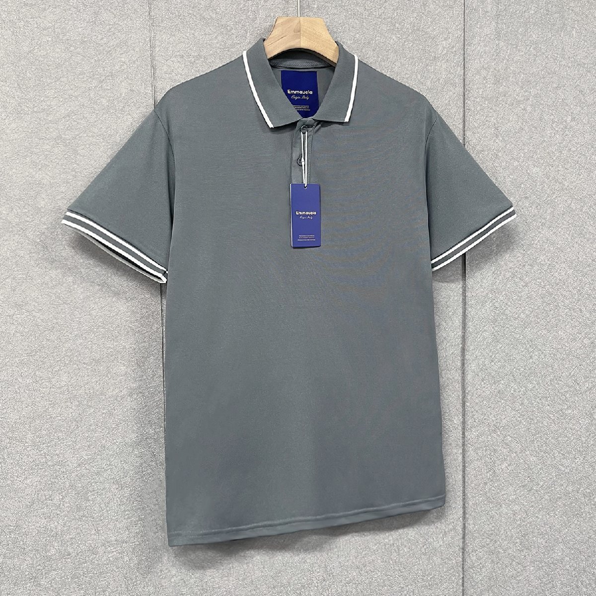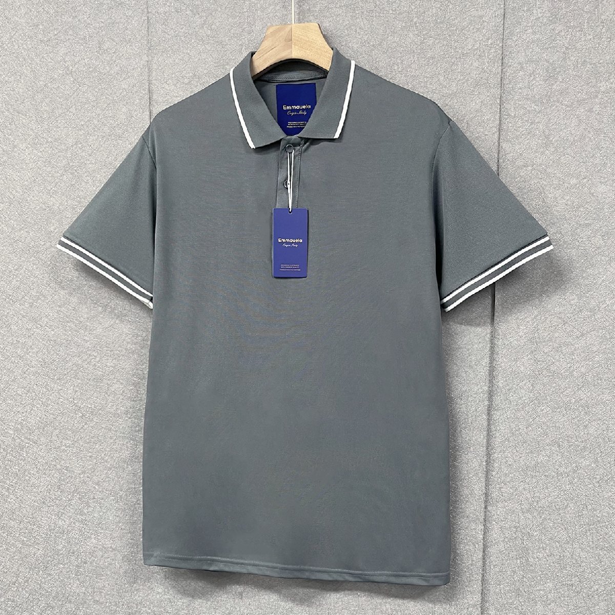 定番・ポロシャツ 定価2万◆Emmauela・イタリア・ミラノ発◆高級 薄手 速乾 快適 シンプル 無地 POLO 半袖 紳士 ゴルフ 通勤 メンズ M/46サイズ
