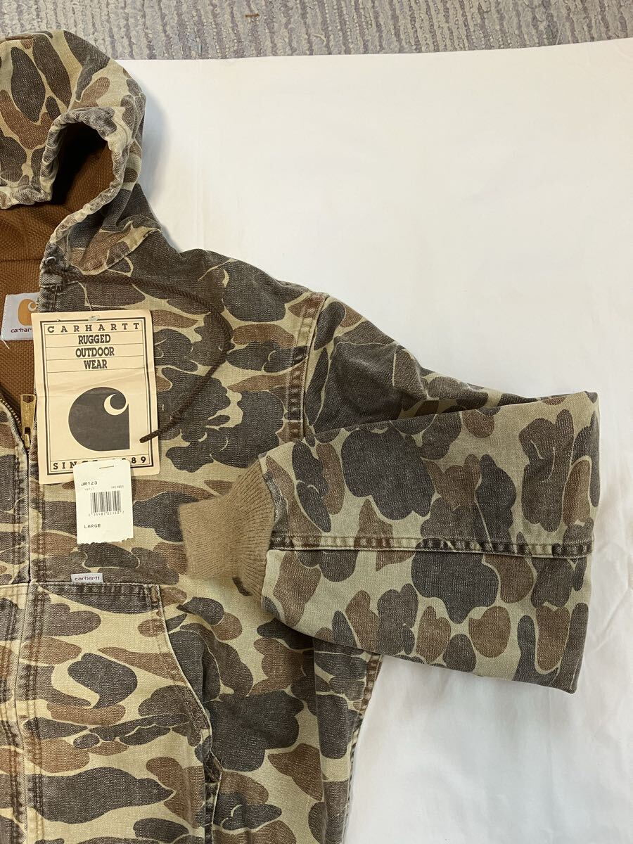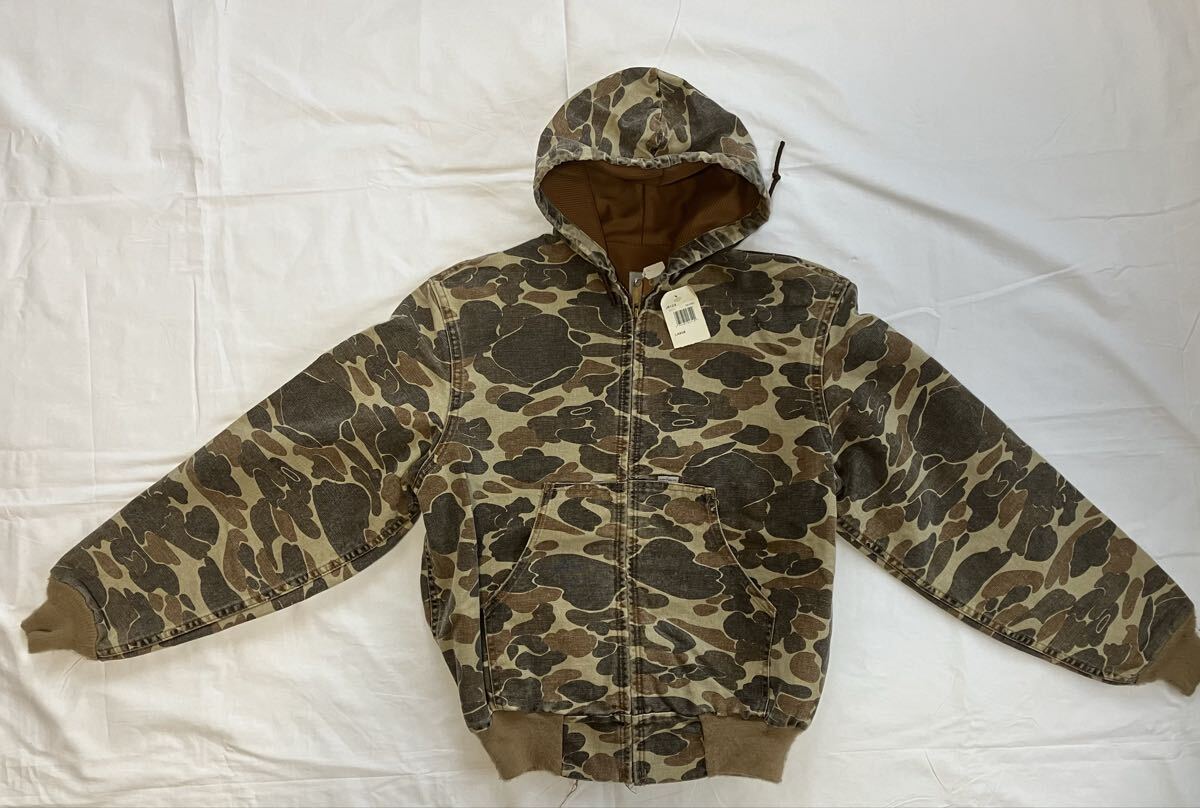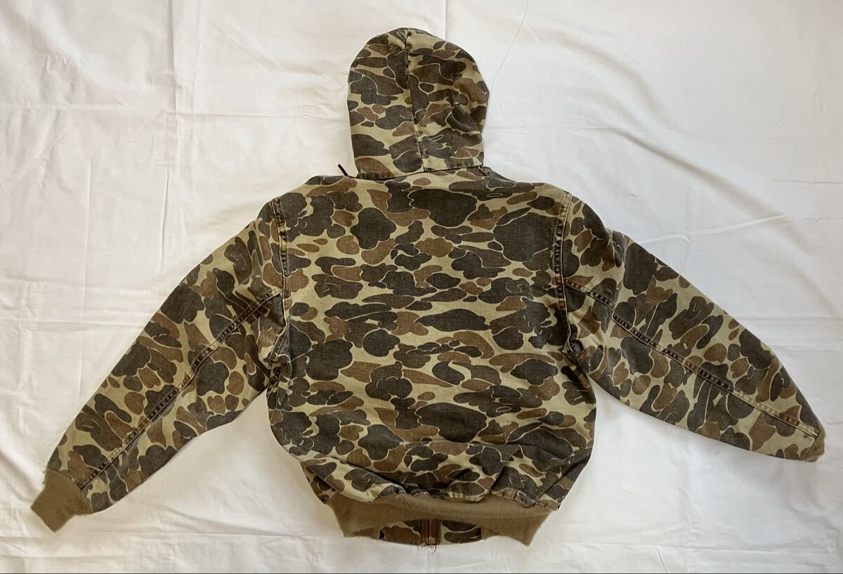 Carhartt90年代ヴィンテージBrown camouflage Duck Activeストーンウォシュ加工でラベルと紙タグを取り外してS/Wをかけておりソフト仕上げになっております。