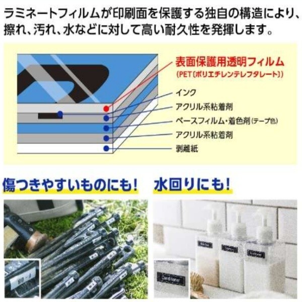 特徴:防水 強粘着 耐摩耗性があり、色褪せにくい、はがれにくく、はがしやすい。