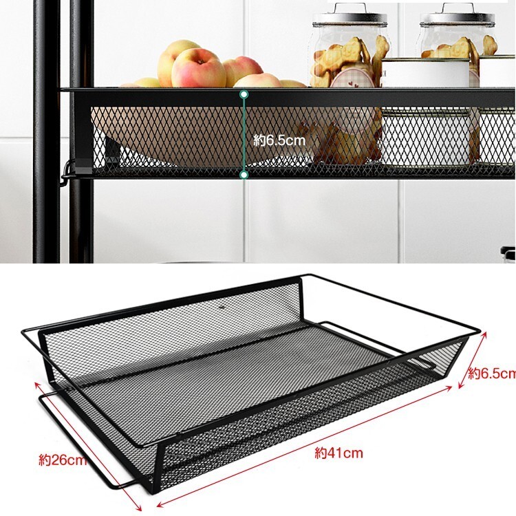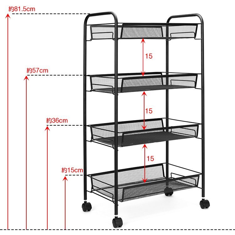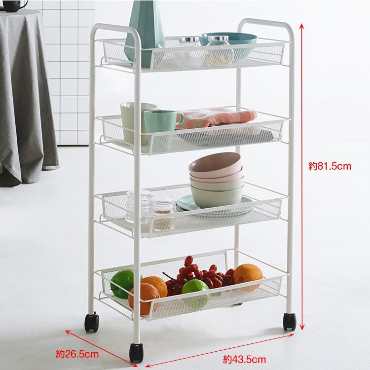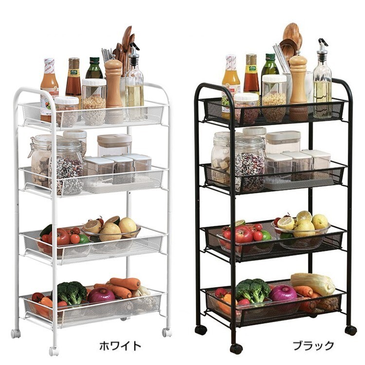 1円 キッチンワゴン キャスター付き 4段 カート メッシュ バスケット スチール ラック メタル シェルフ 棚 おしゃれ小物 ny287