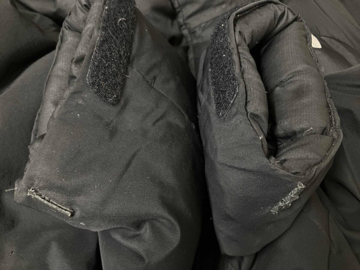 | 袖口のベルトが破損しています。 表面、ロゴプリント等数カ所に擦れがあります。 タグが薄くなっており、サイズ表記が不明です。 写真6〜9枚目をご参照下さい。 |